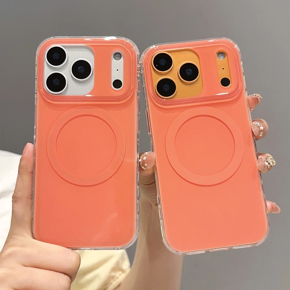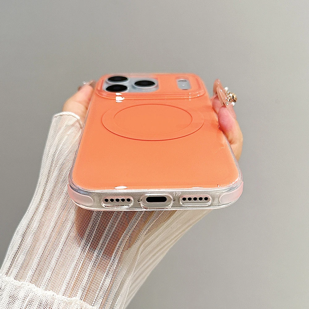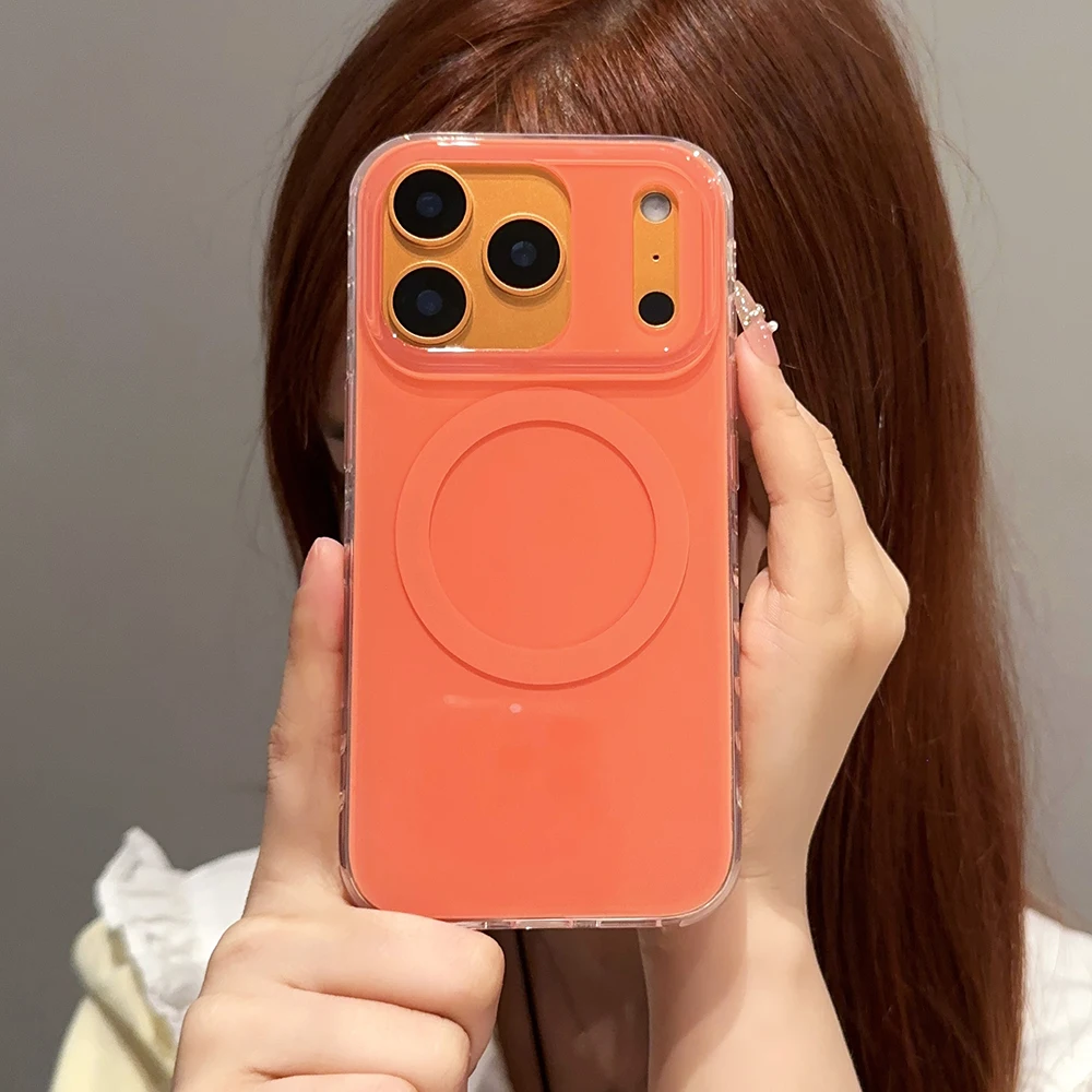 Funda de teléfono magnética de Color sólido naranja Simple para IPhone 13 14 15 17 17pro 17ProMax funda protectora de carga inalámbrica