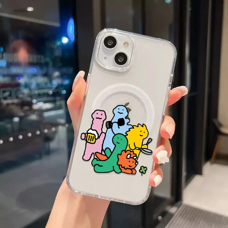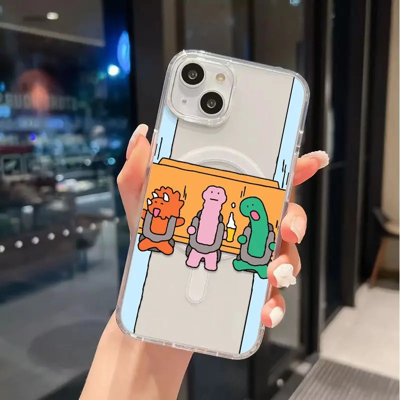 Comprar Funda de teléfono magnética con dibujos animados de dinosaurio J-Joguman Magsafe para Samsung Galaxy S25 S24 S23 S22 S21 FE Plus Ultra 5G, funda transparente de TPU