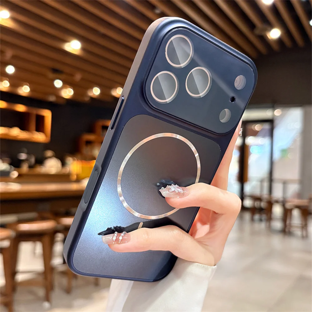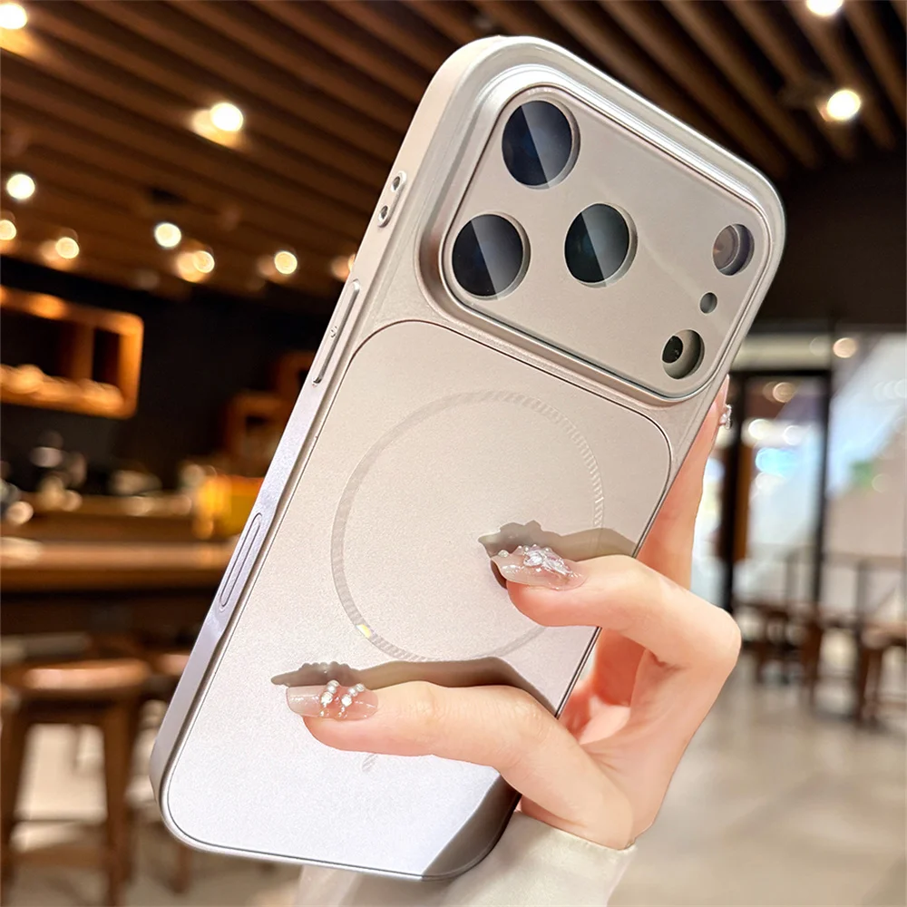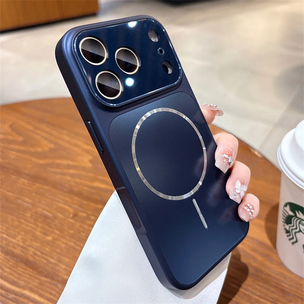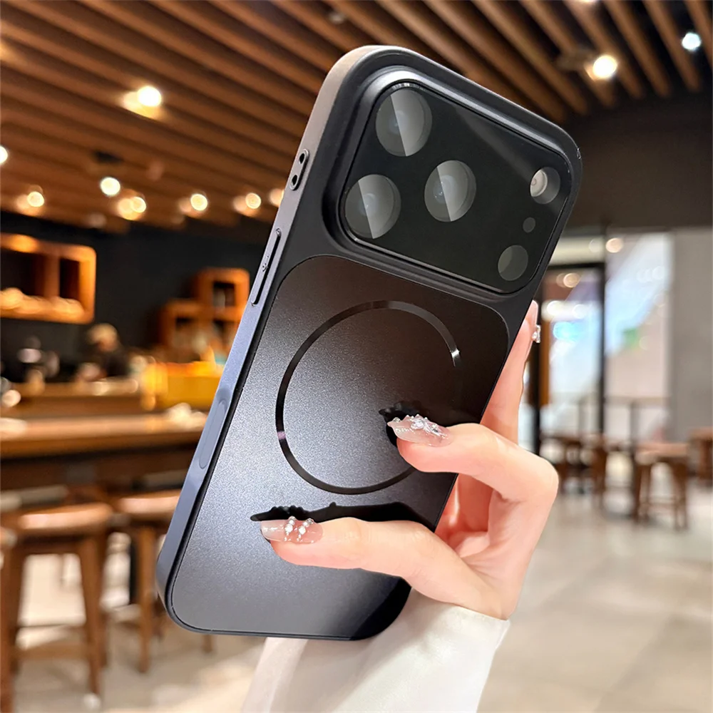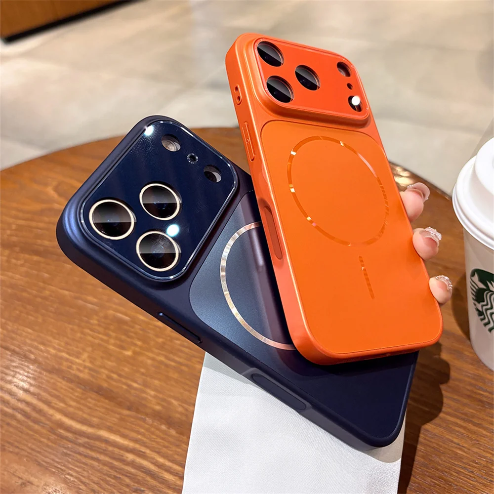 Funda de teléfono magnética esmerilada lisa Original para Magsafe para iPhone 17 Pro Max, lente de vidrio templado de aire, cubierta protectora completa para cámara