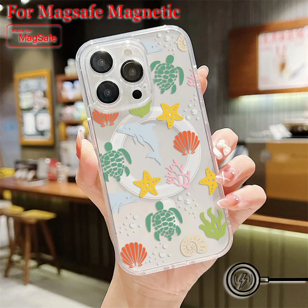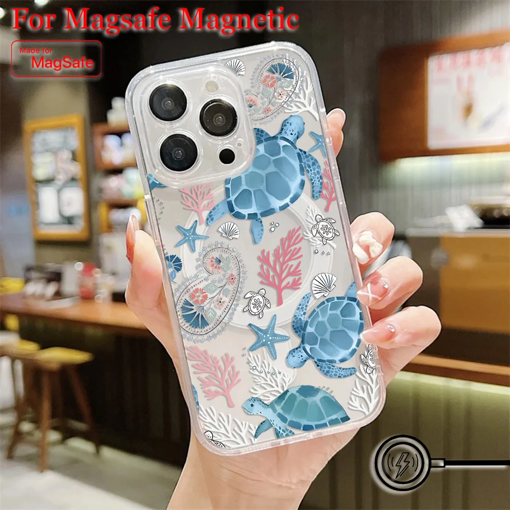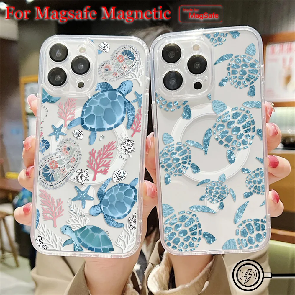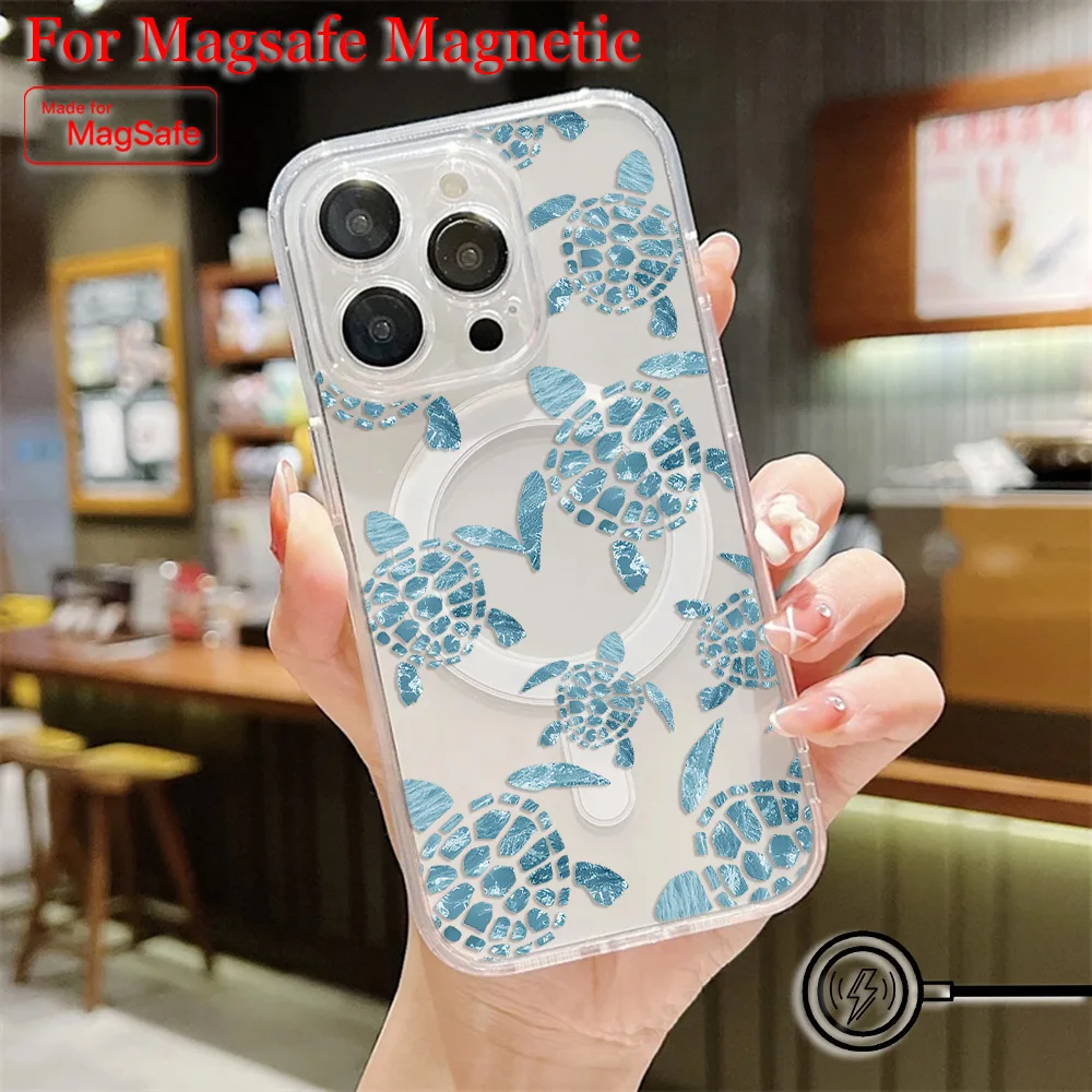 Comprar Funda de teléfono magnética Magsafe con diseño de tortuga de dibujos animados para Samsung Galaxy S25 S24 S23 S22 S21 S20 FE Plus Ultra 5G, funda transparente de TPU
