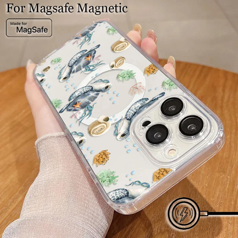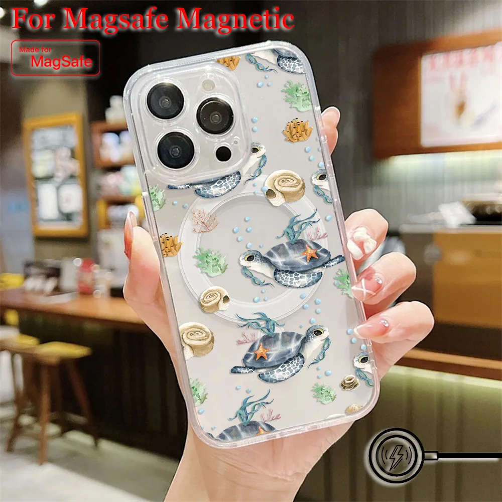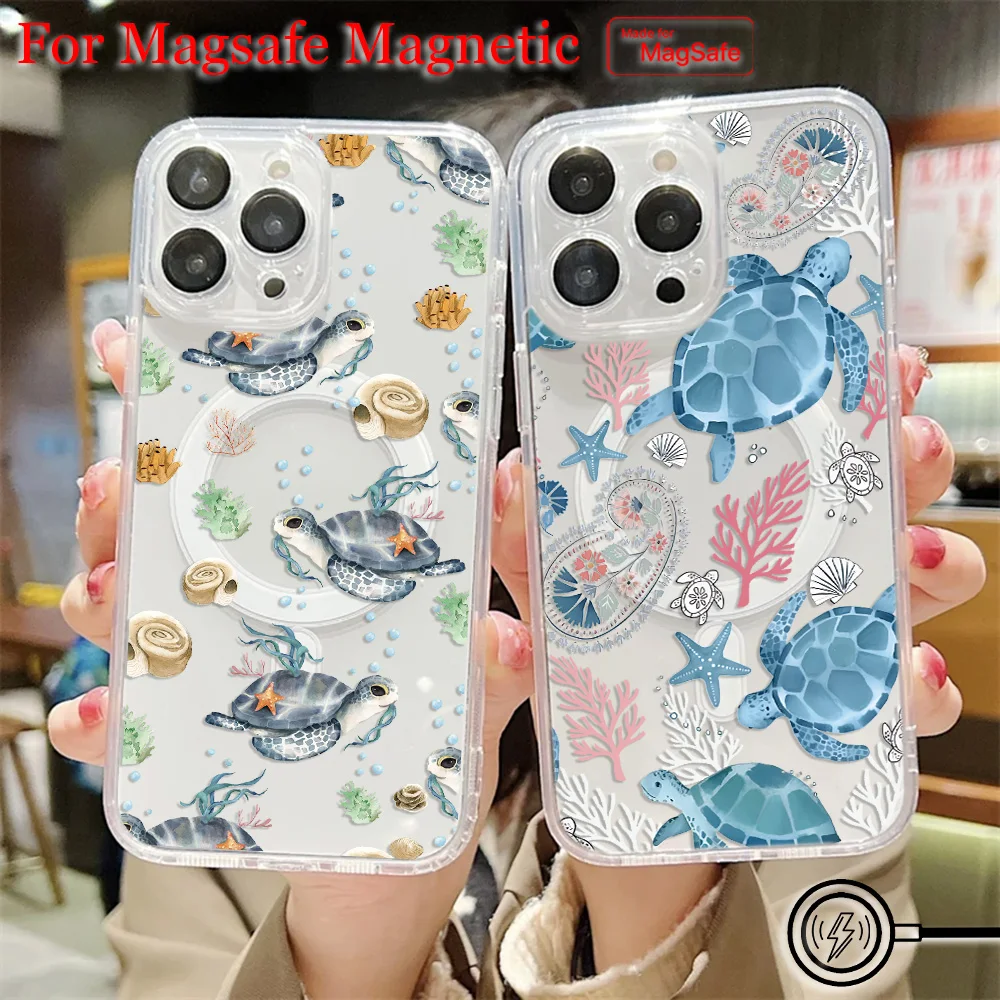 Comprar Funda de teléfono magnética Magsafe con diseño de tortuga de dibujos animados para Samsung Galaxy S25 S24 S23 S22 S21 S20 FE Plus Ultra 5G, funda transparente de TPU
