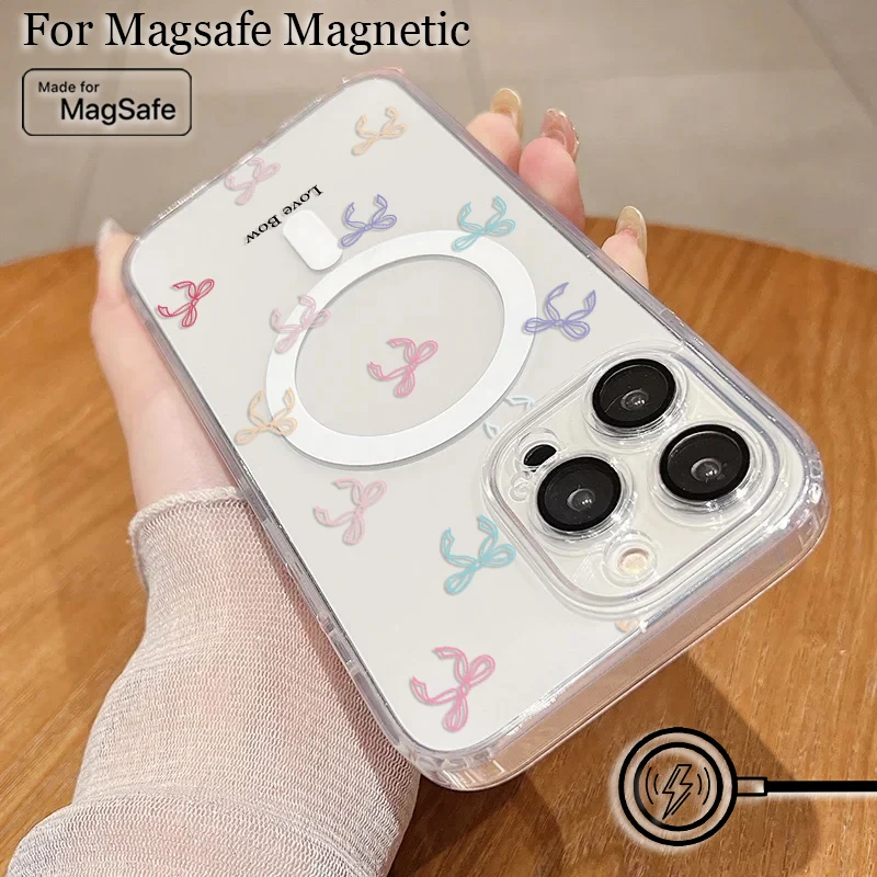 Comprar Funda de teléfono magnética Magsafe con estampado de lazo colorido para Samsung Galaxy S25 S24 S23 S22 S21 S20 FE Plus Ultra 5G, funda de TPU transparente suave