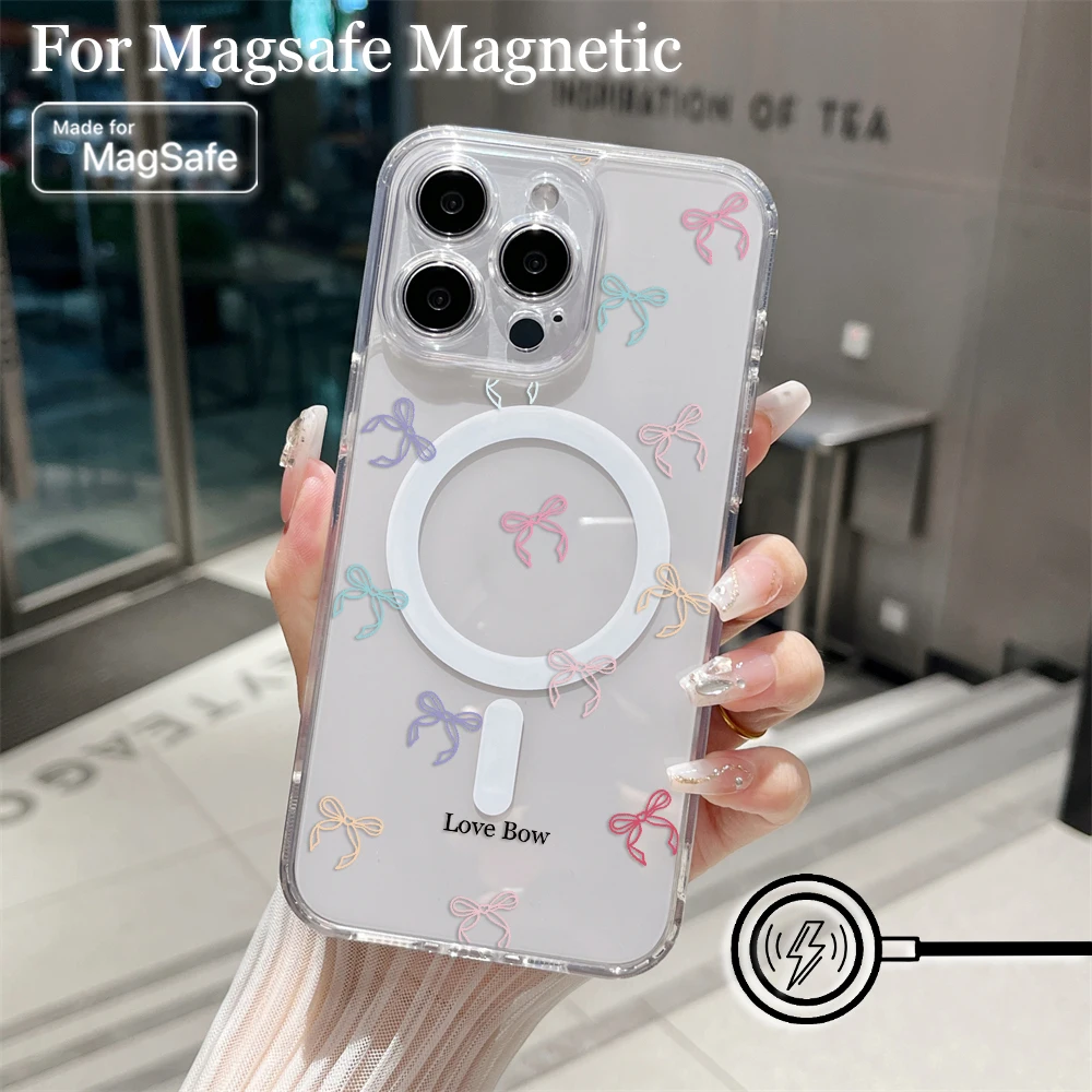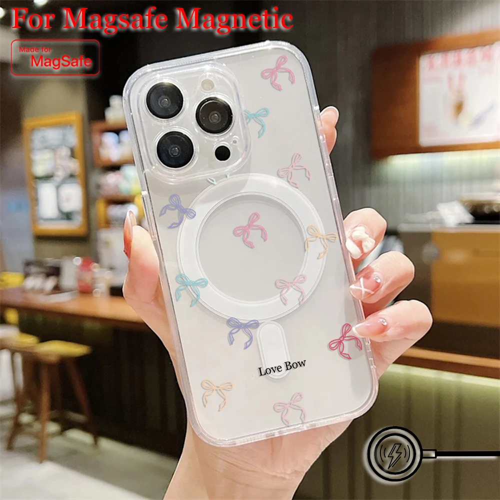Comprar Funda de teléfono magnética Magsafe con estampado de lazo colorido para Samsung Galaxy S25 S24 S23 S22 S21 S20 FE Plus Ultra 5G, funda de TPU transparente suave