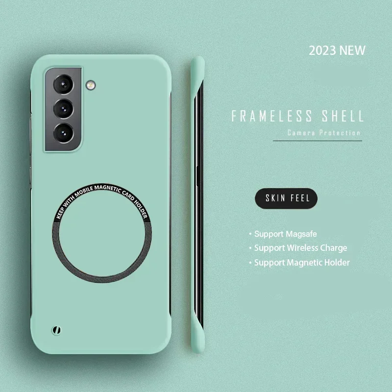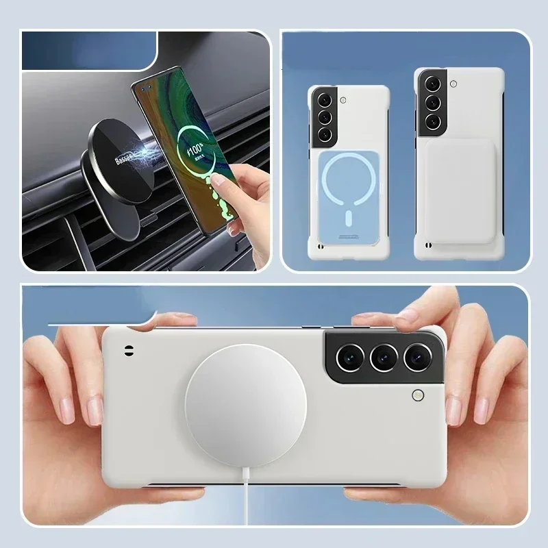Funda de teléfono magnética sin marco de PC dura para Samsung Galaxy S24 S23 S22 S21 S20 FE S10 NOTE 20 Ultra 10 Plus Magsafe, funda fina mate