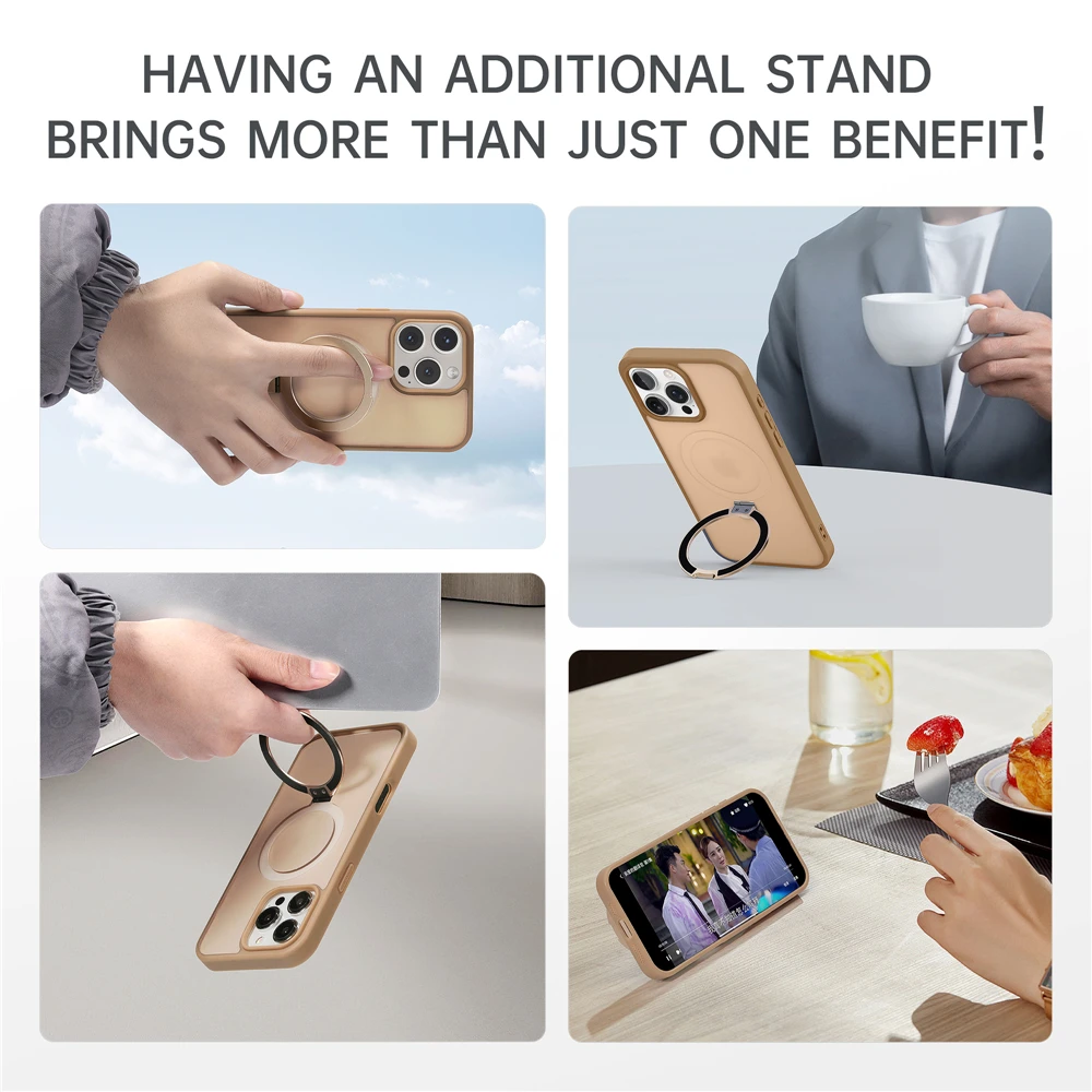 Comprar Funda de teléfono magnética mate con anillo de Metal para Magsafe IPhone 15 14 16 Pro Max Plus 15Pro 16Pro, funda protectora completa con soporte