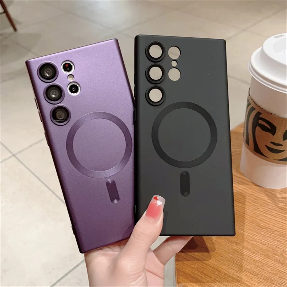 Funda de teléfono magnética mate chapada para Samsung Galaxy S25 S24 Ultra S23 FE S22 Plus protección de lente de vidrio cubierta suave a prueba de golpes