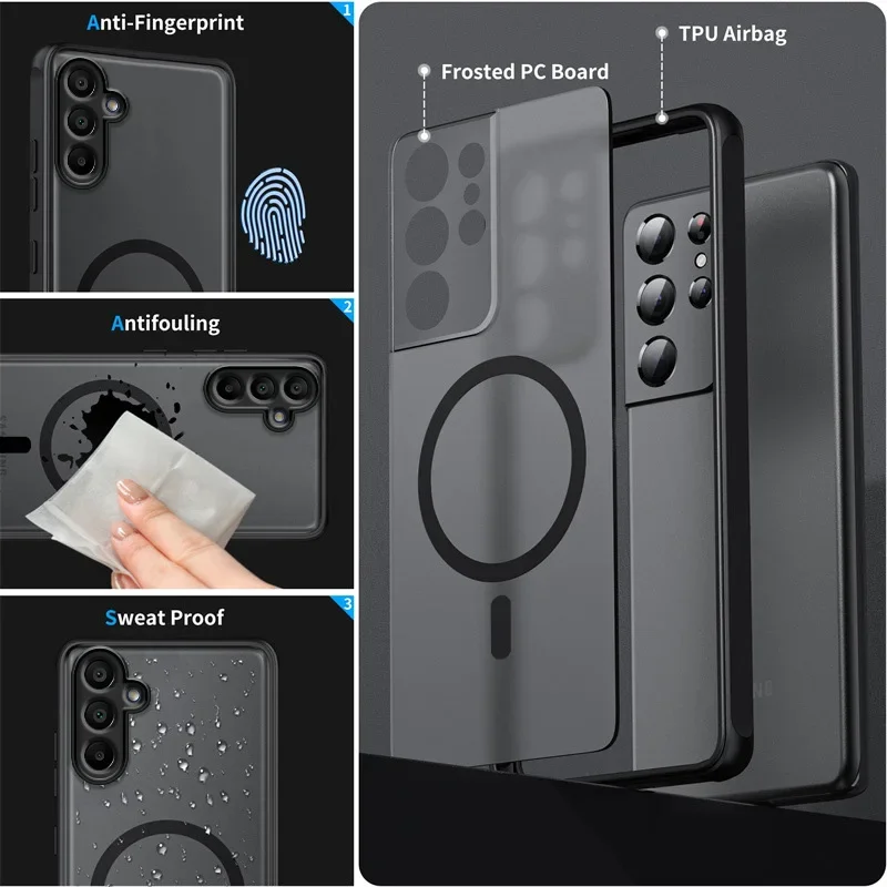 Funda de teléfono magnética mate de lujo para Samsung Galaxy A56 A36 A26 A16 A06 funda rígida de cubierta completa resistente a impactos y a golpes