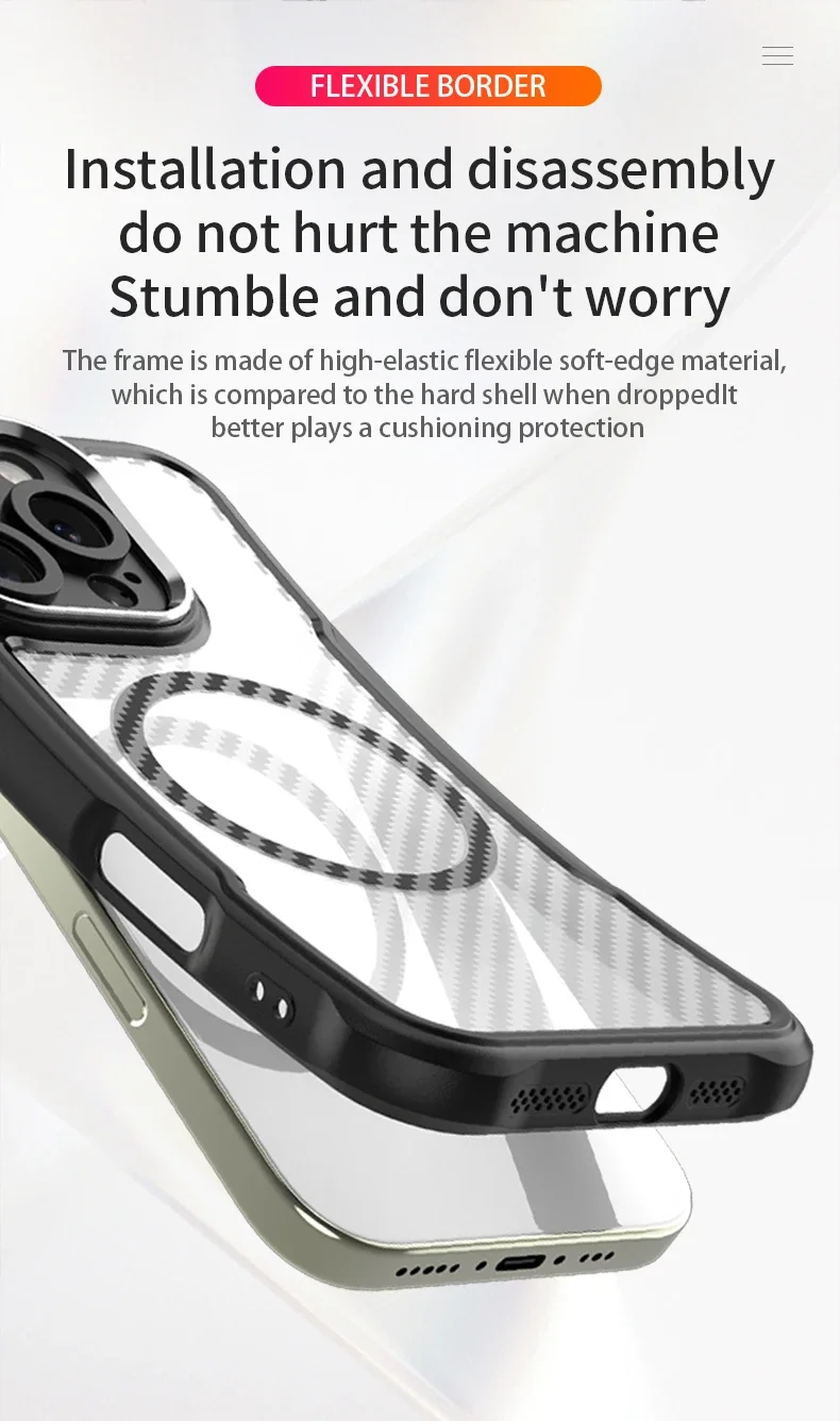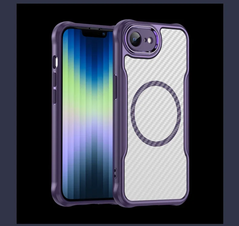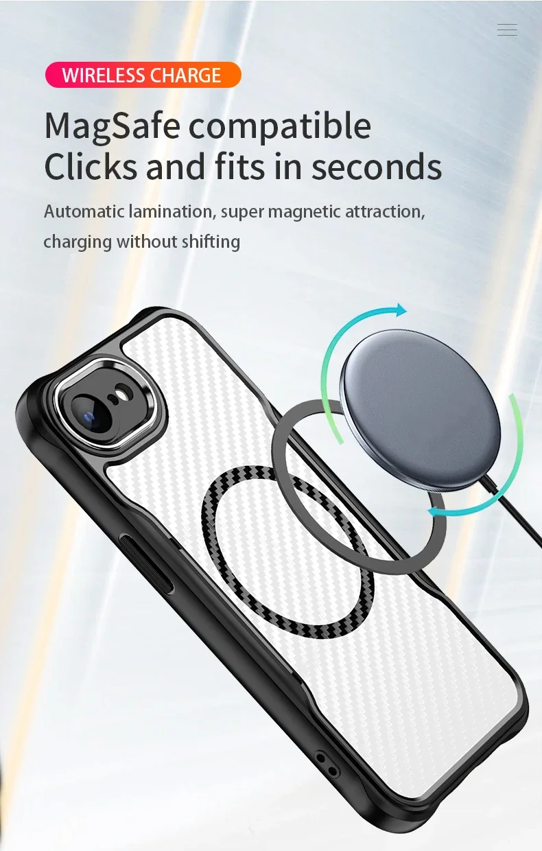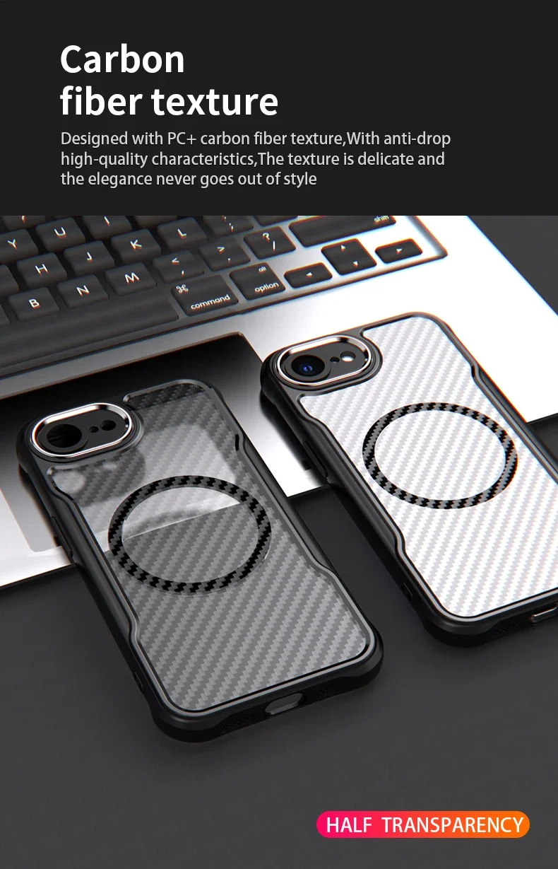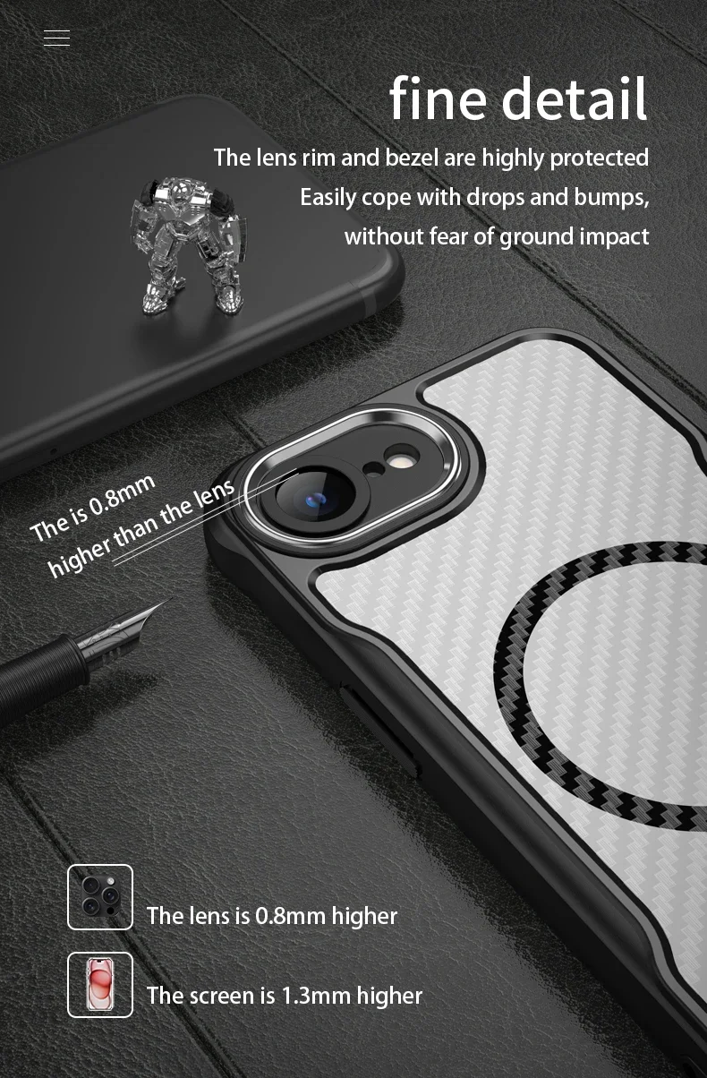 Funda de teléfono magnética con patrón de fibra de carbono para iPhone 11 12 13 14 15 16 Pro Max Plus 16E TPU + PC a prueba de golpes para Magsafe cubierta trasera