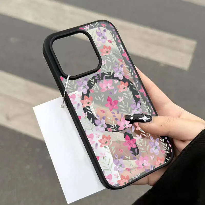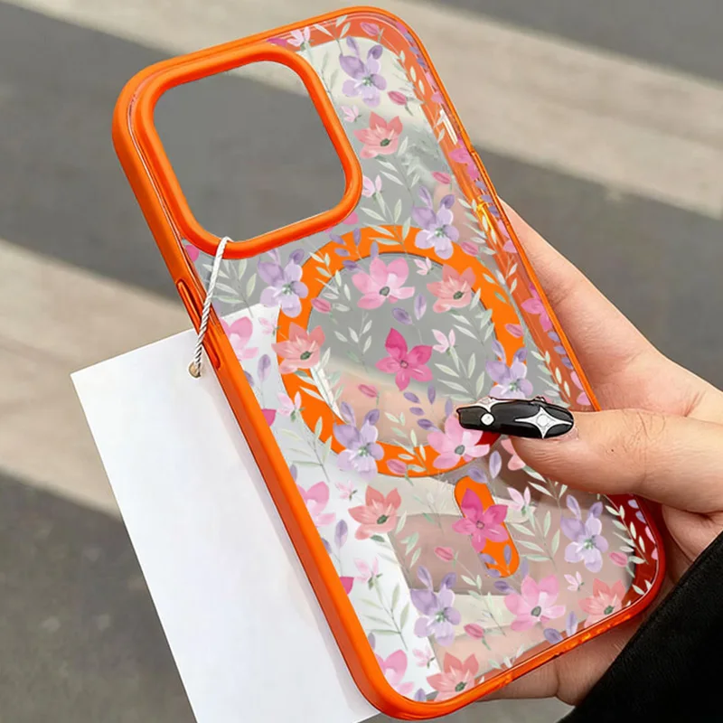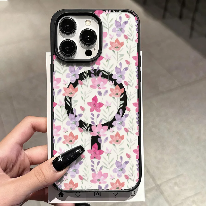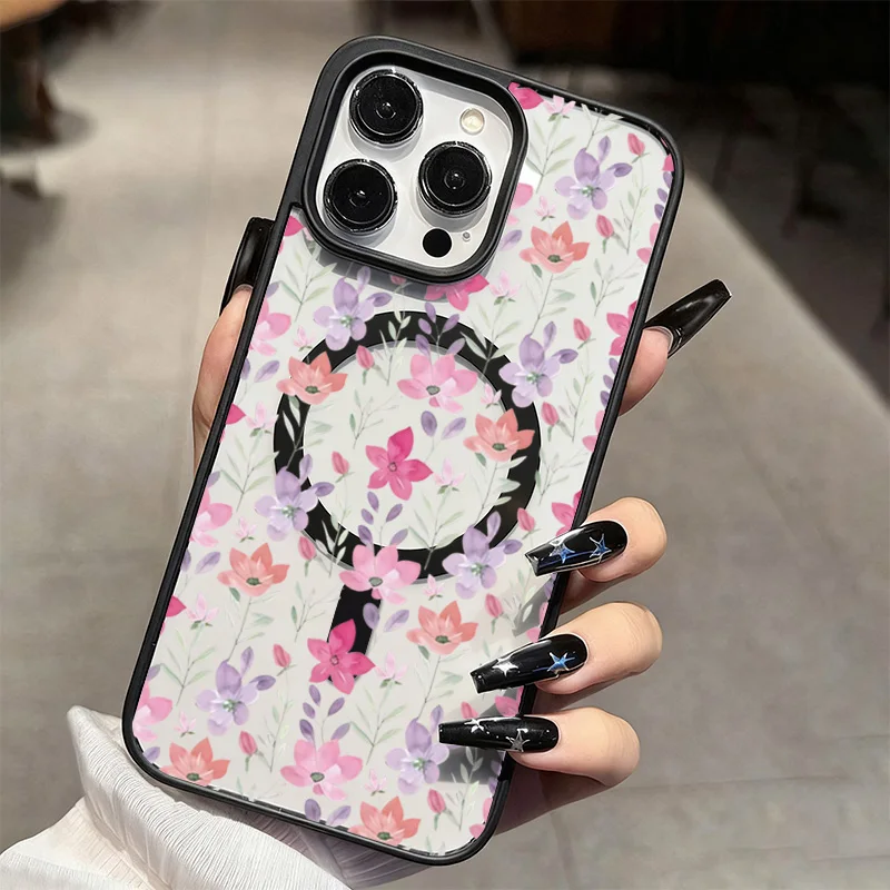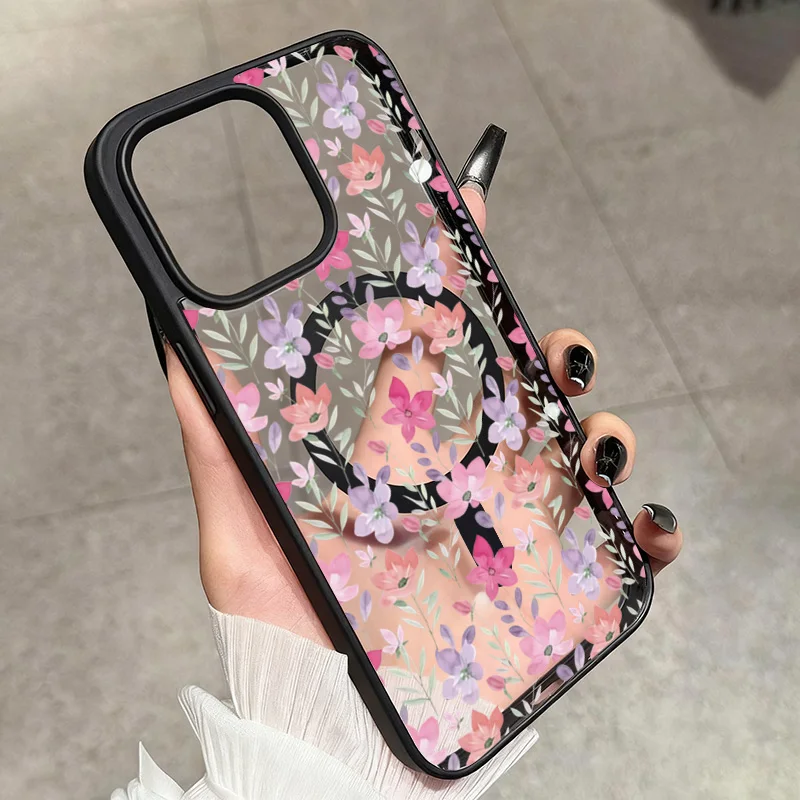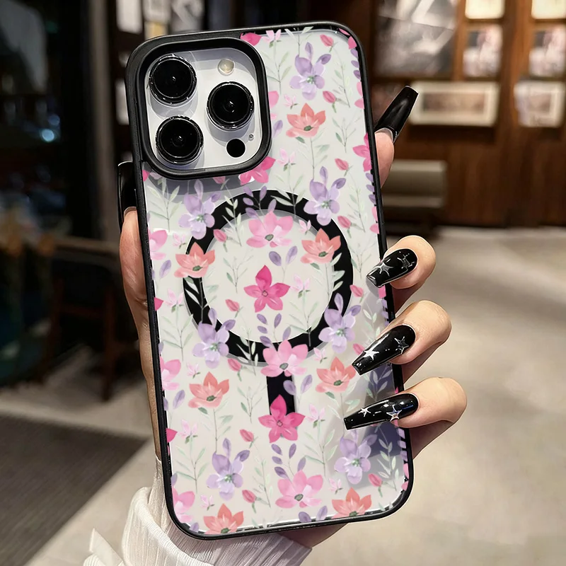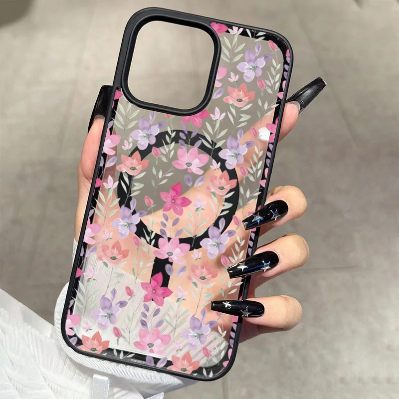 Funda de teléfono magnética con patrón de flores moradas para iPhone 17, funda de parachoques transparente de aire para iPhone 16 Pro Max 15 Plus 14 13 12 11
