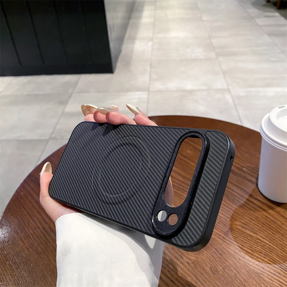 Comprar Funda de teléfono magnética de PC con diseño de fibra de carbono de lujo para Google Pixel 8 9 Pro XL 9A 8A 7 7A 6 6A Protector de choque cubierta de Color sólido