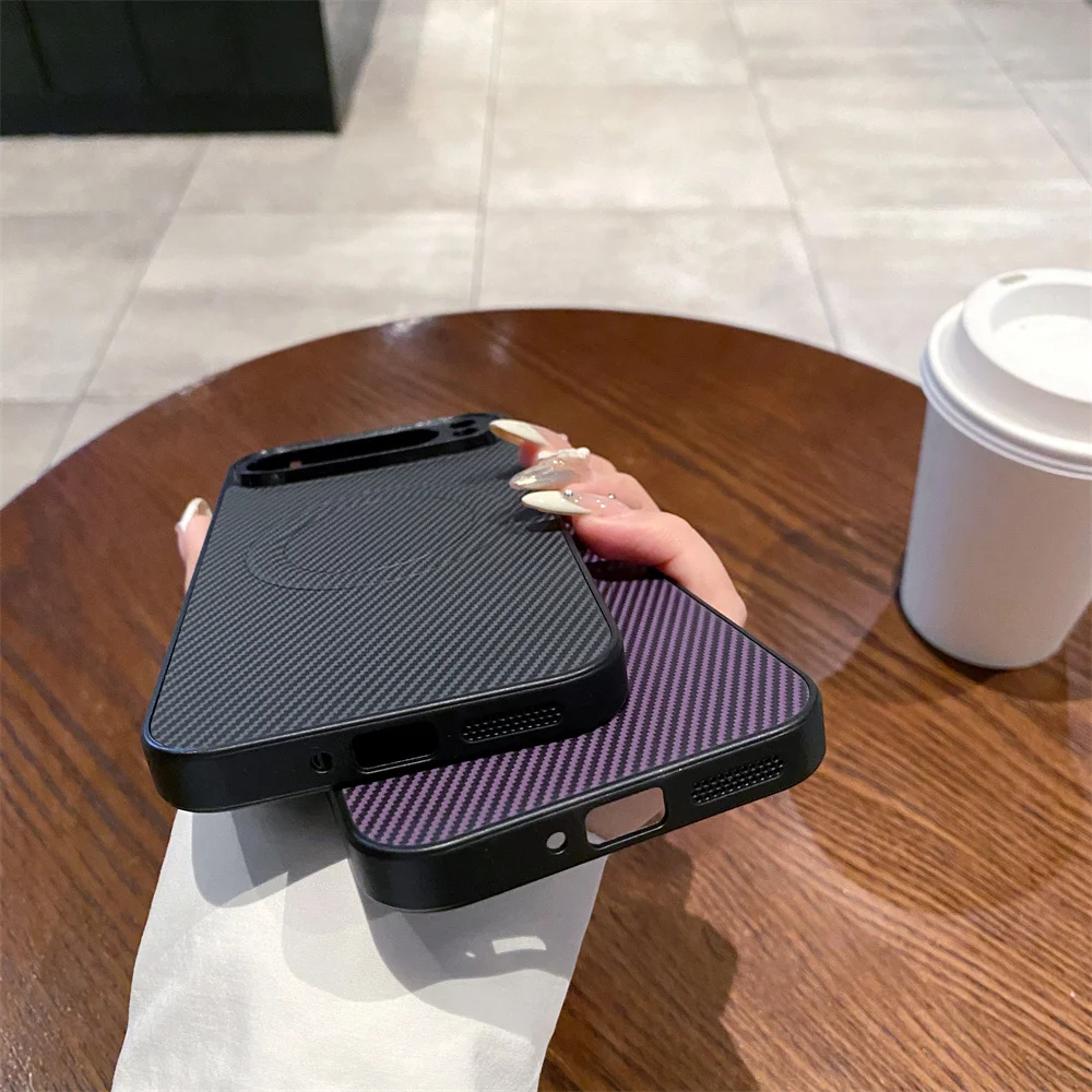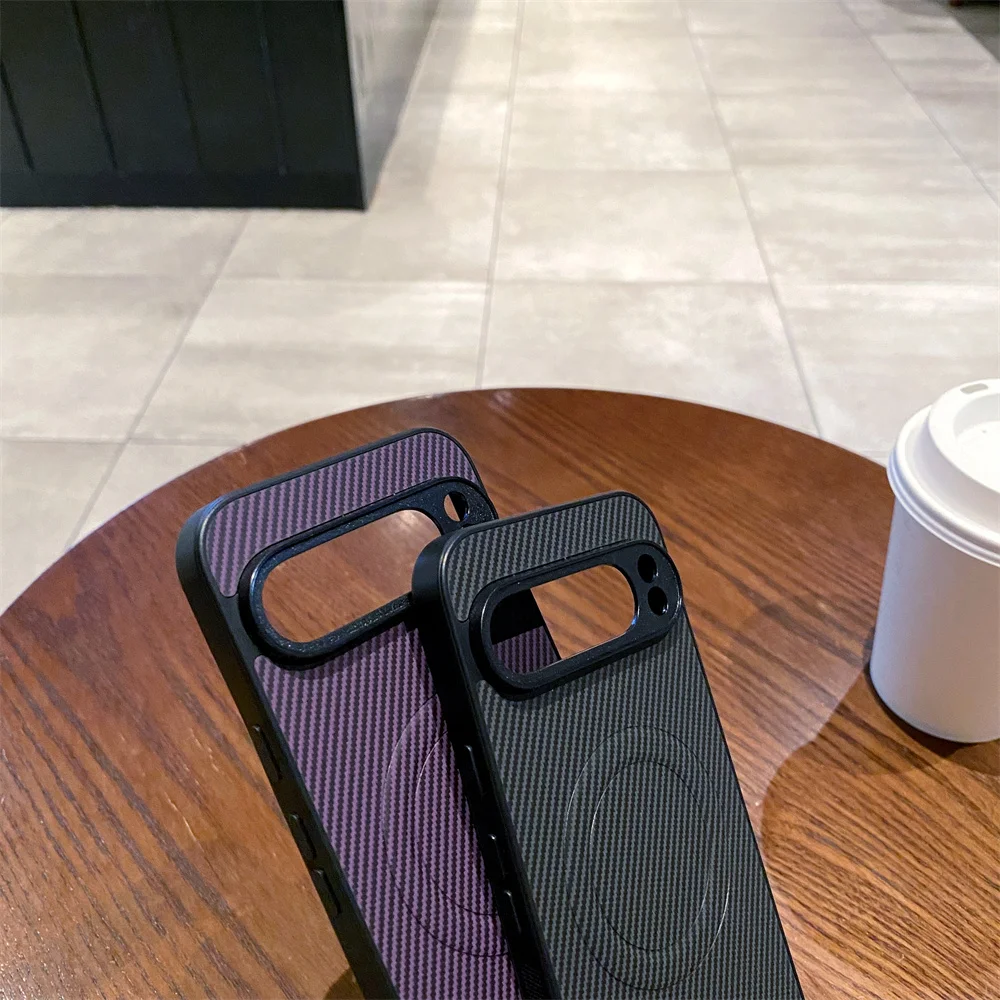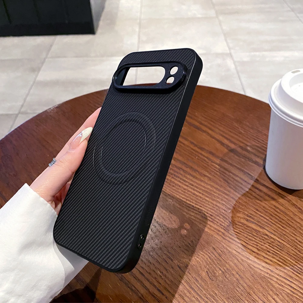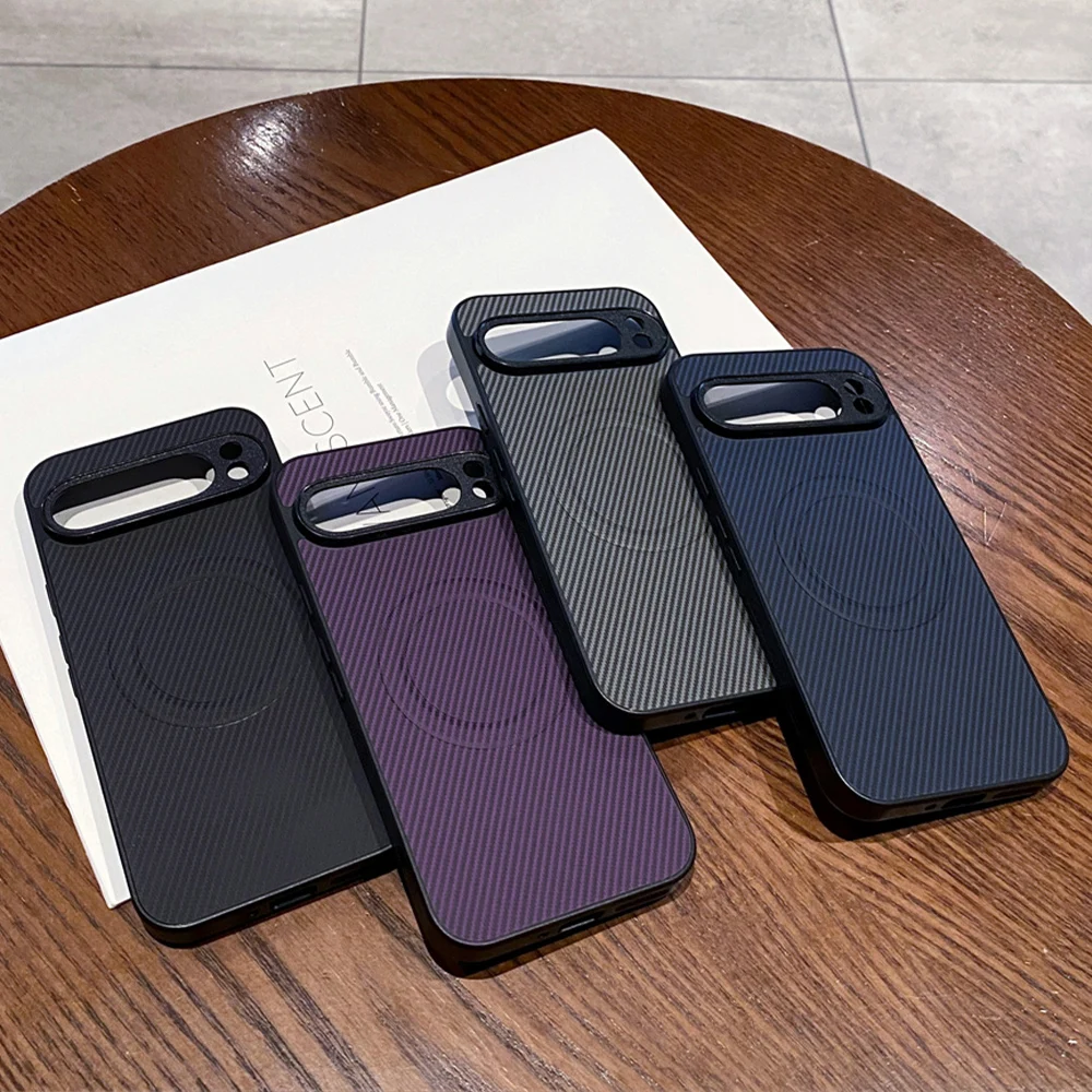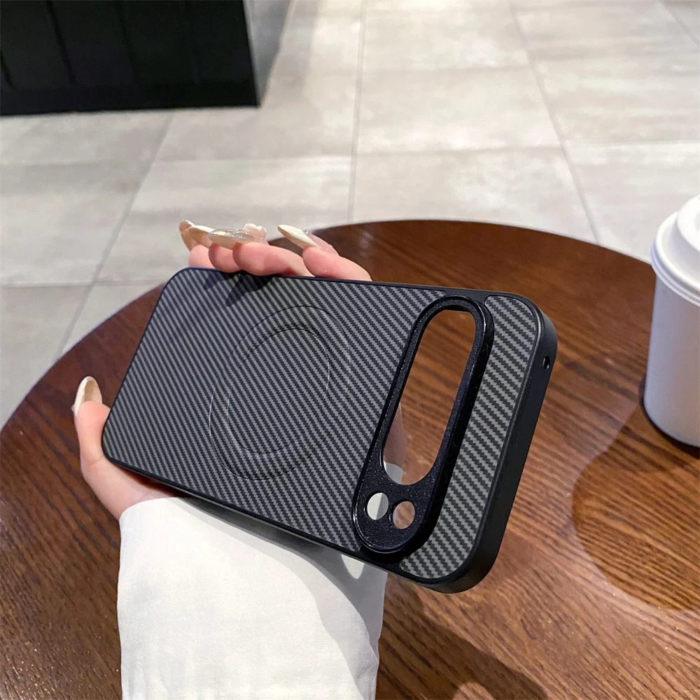 Funda de teléfono magnética de PC con patrón de fibra de carbono de lujo para Google Pixel 8 9 Pro XL 9A 8A 7 6A Protector de golpes cubierta de Color sólido
