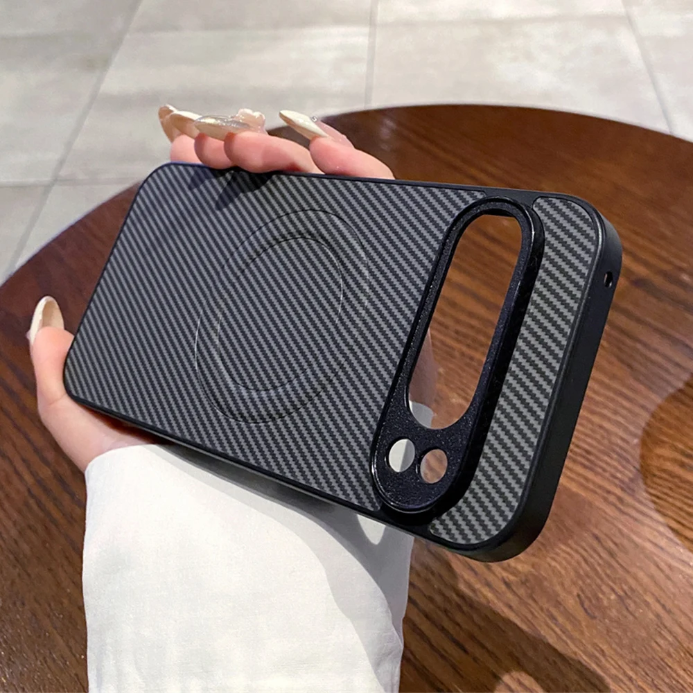 Comprar Funda de teléfono magnética de PC con diseño de fibra de carbono de lujo para Google Pixel 8 9 Pro XL 9A 8A 7 7A 6 6A Protector de choque cubierta de Color sólido