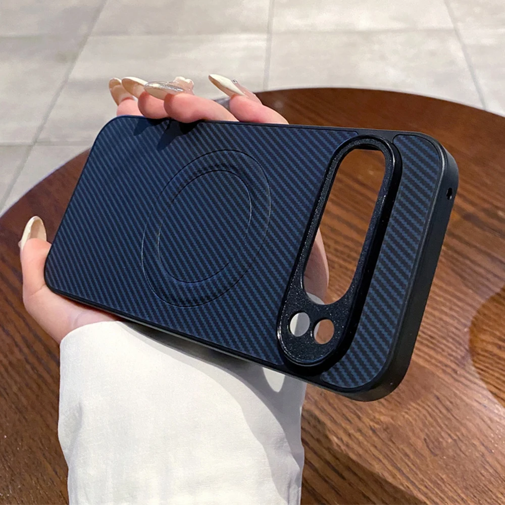 Funda de teléfono magnética de PC con patrón de fibra de carbono de lujo para Google Pixel 8 9 Pro XL 9A 8A 7 6A Protector de golpes cubierta de Color sólido