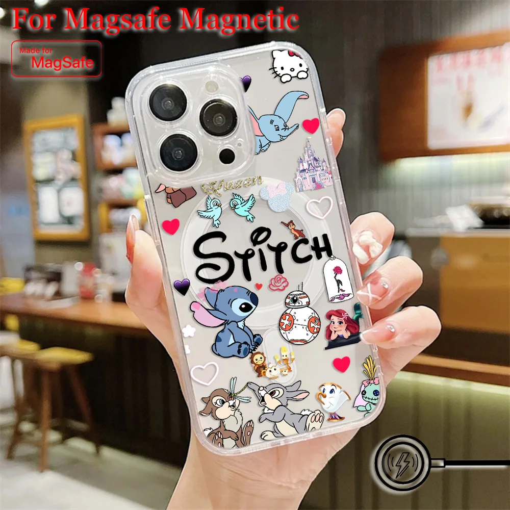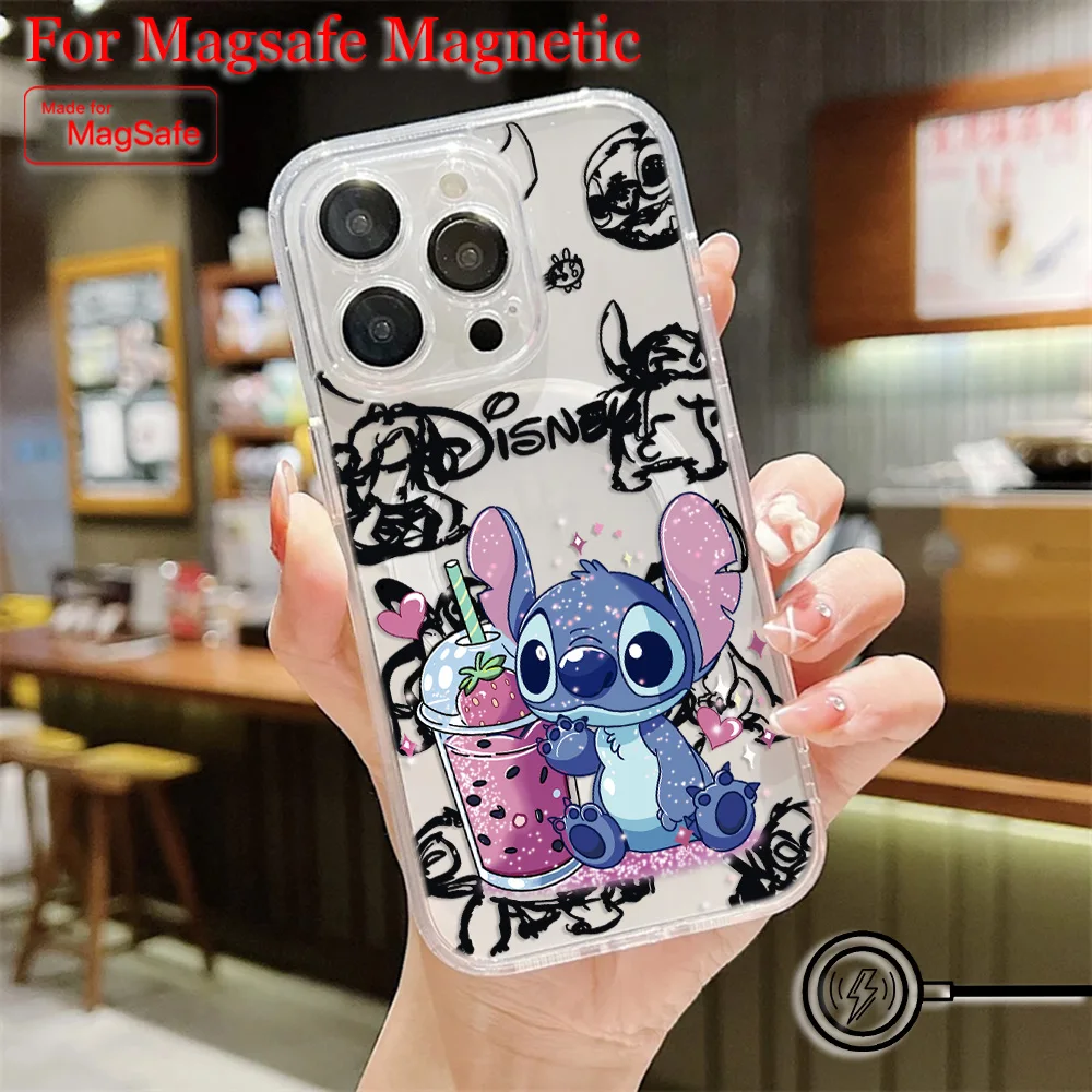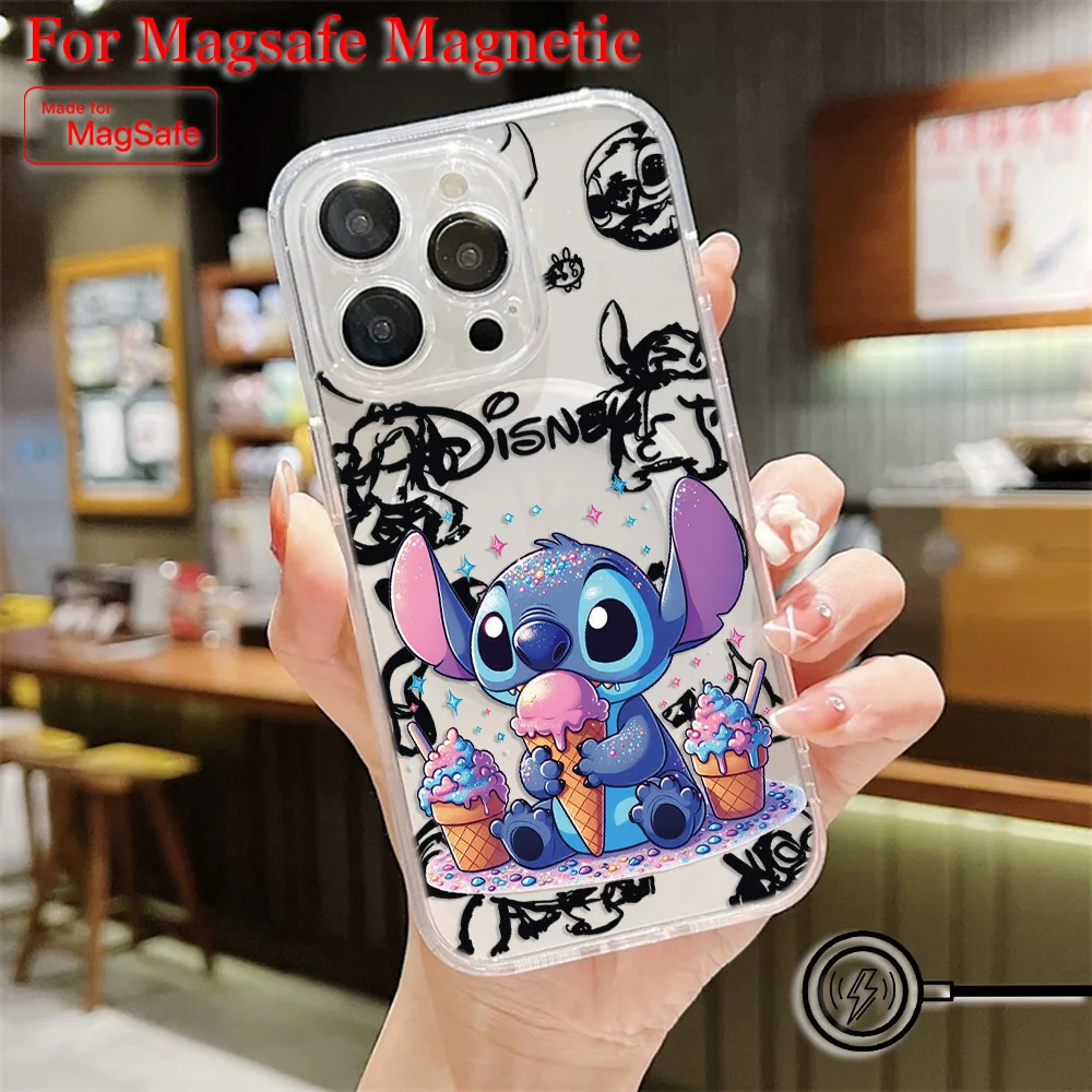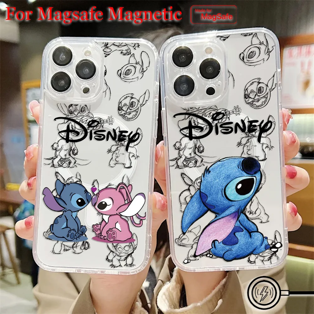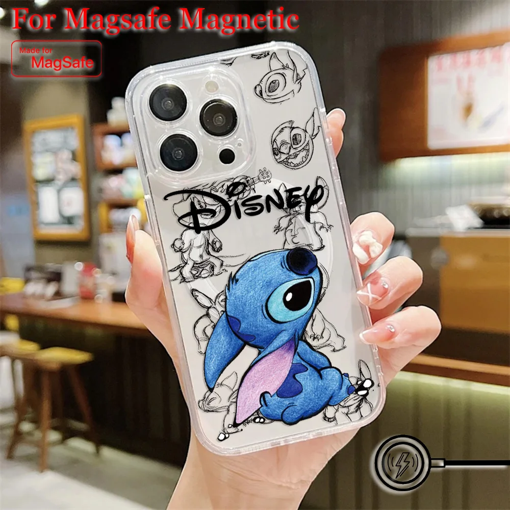 Comprar Funda de teléfono magnética Popular de dibujos animados Stitch Disneys Magsafe para Samsung Galaxy S25 S24 S23 S22 S21 FE Plus Ultra 5G cubierta transparente