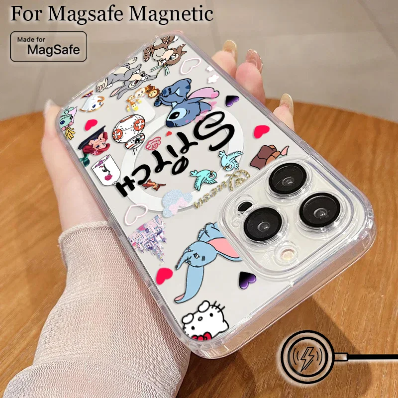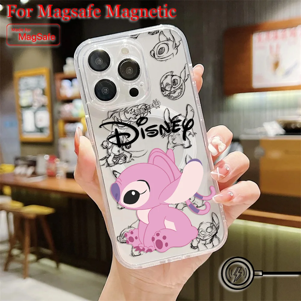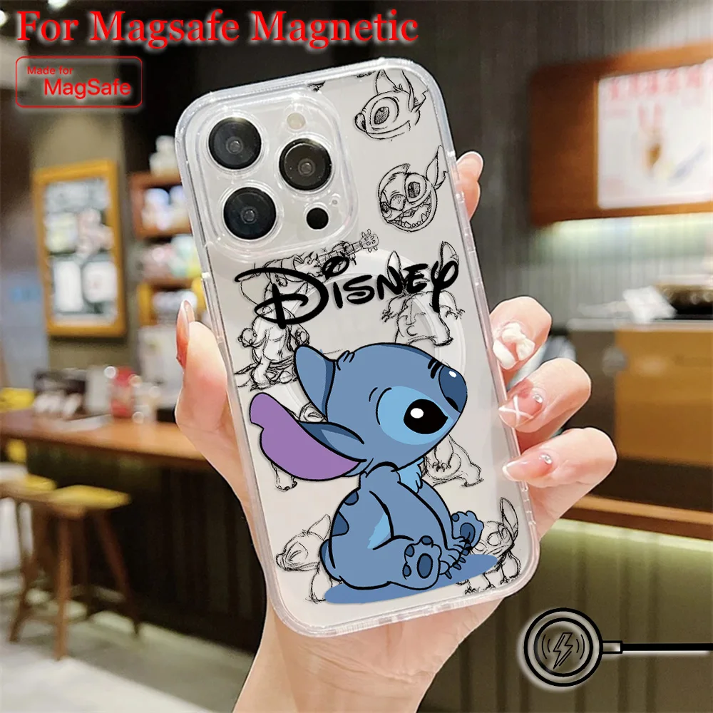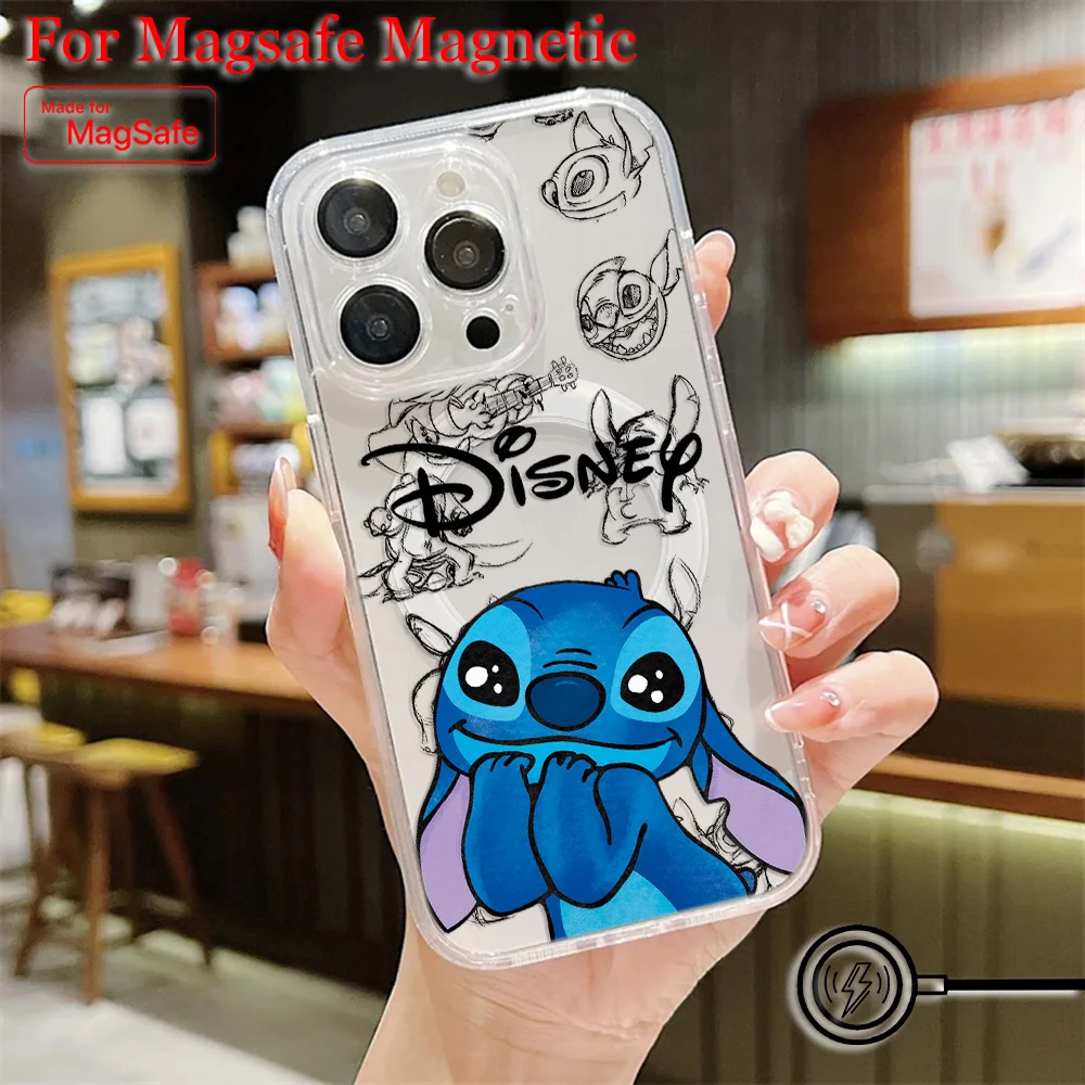 Comprar Funda de teléfono magnética Popular de dibujos animados Stitch Disneys Magsafe para Samsung Galaxy S25 S24 S23 S22 S21 FE Plus Ultra 5G cubierta transparente