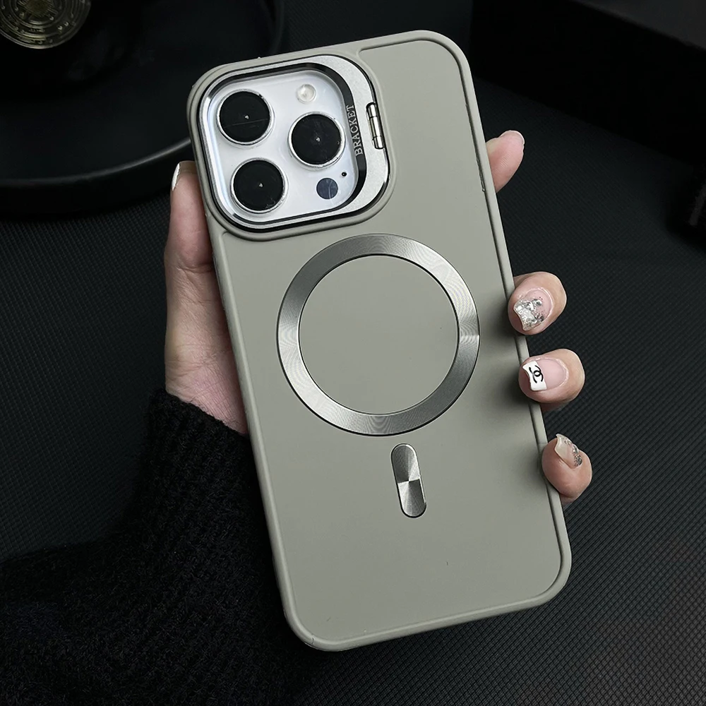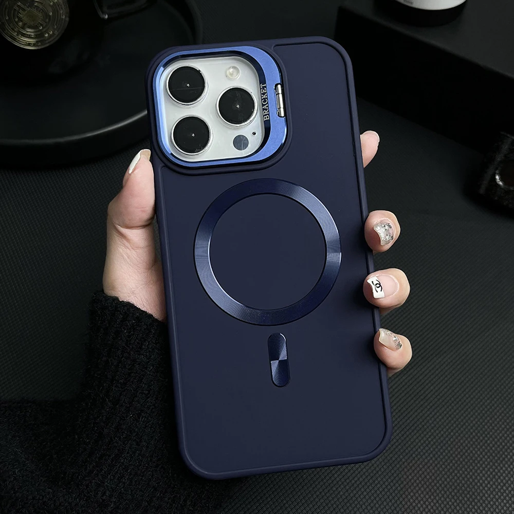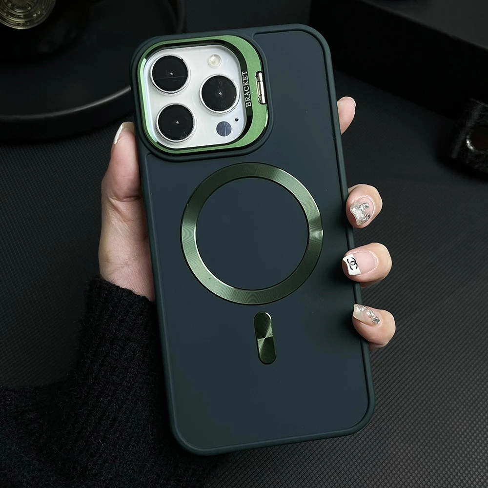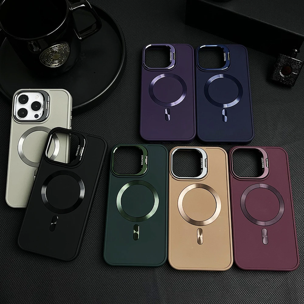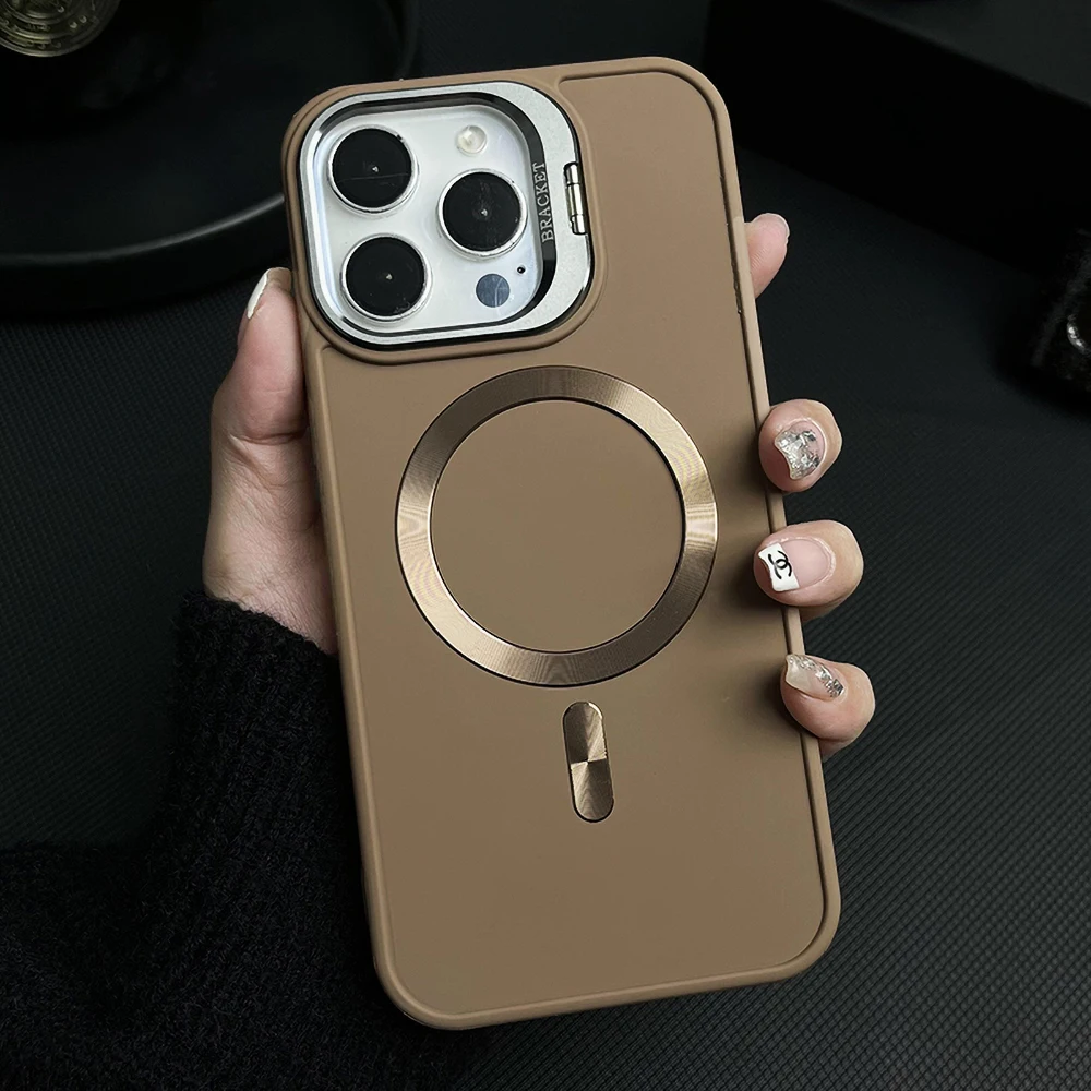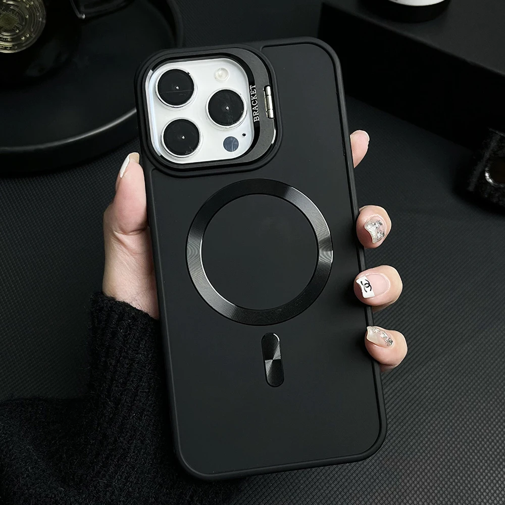 Funda magnética con soporte de lente para iPhone 13 15 12 16 Pro Max 16promax 15promax 14promax, funda mate a prueba de golpes