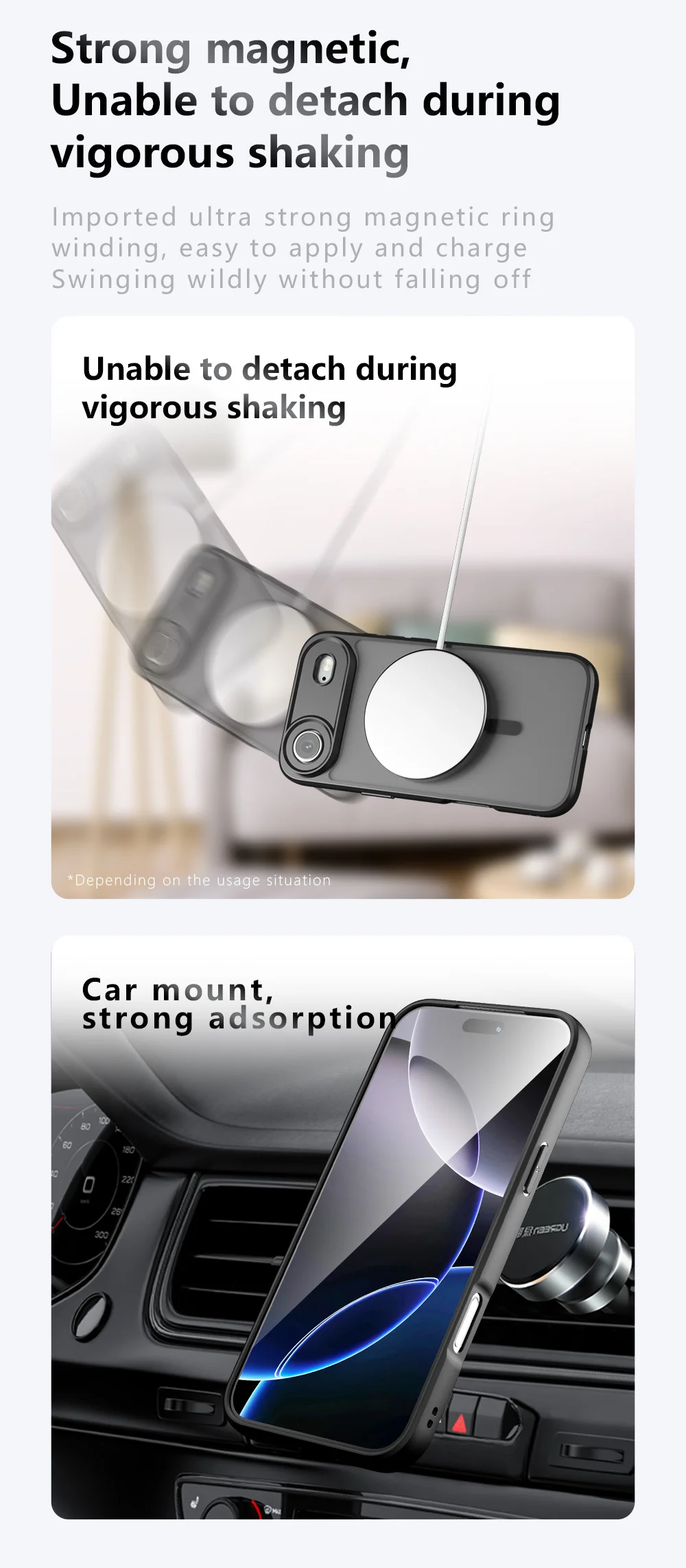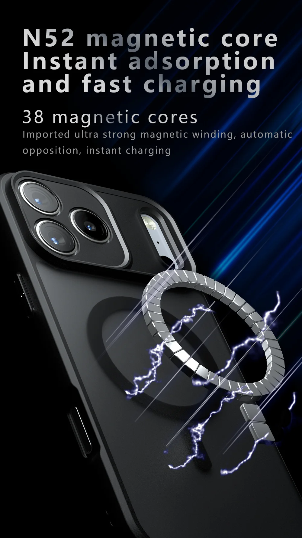 Funda de teléfono magnética translúcida mate de lujo para Magsafe para iPhone 15 16 17 Pro Max Air 16 Plus 16E, protección de lente, cubierta trasera