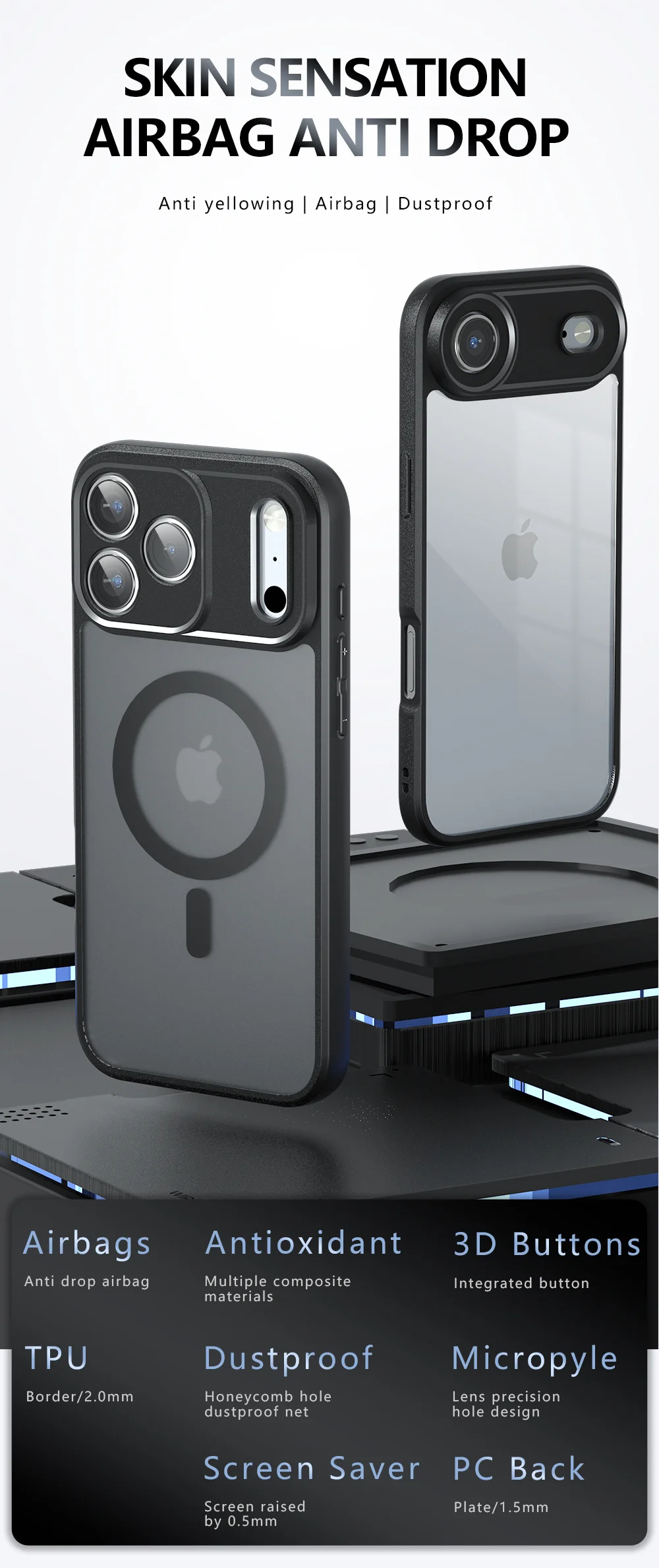 Comprar Funda de teléfono magnética translúcida mate Magsafe de lujo para iPhone 15 16 17 Pro Max Air 16 Plus 16E cubierta trasera de protección de lente