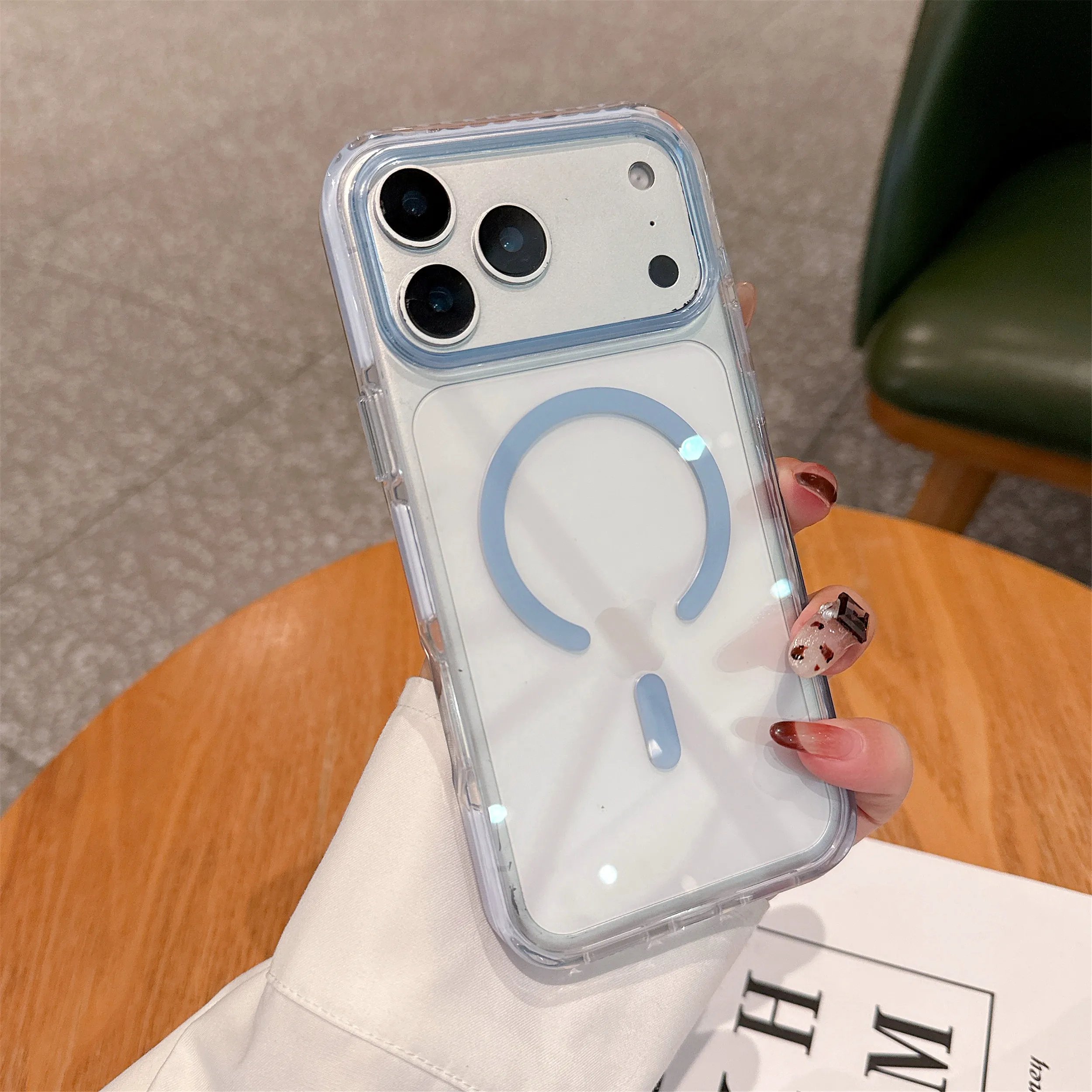 Funda de teléfono magnética transparente para iPhone 17 Pro Max 16 Plus 15 14 13 12 para Magsafe Clear PC + TPU cubierta protectora a prueba de golpes
