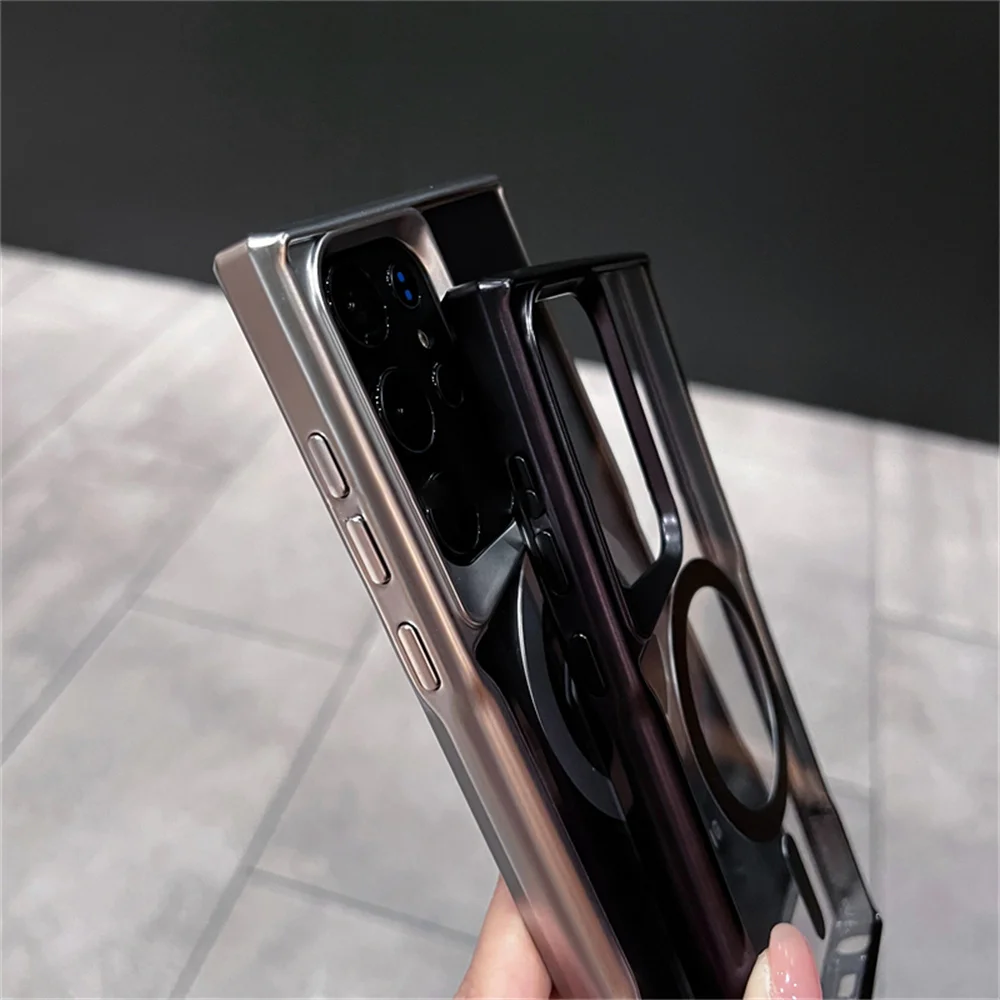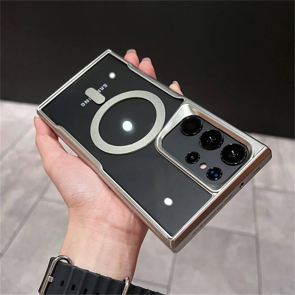 Luxury For Magsafe Transparent Magnetic Phone Case For Samsung S25 S24 Plus S23 S22 Ultra 5G Wireless Charging Shockproof Cover