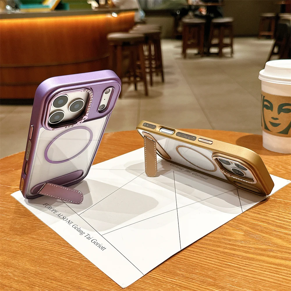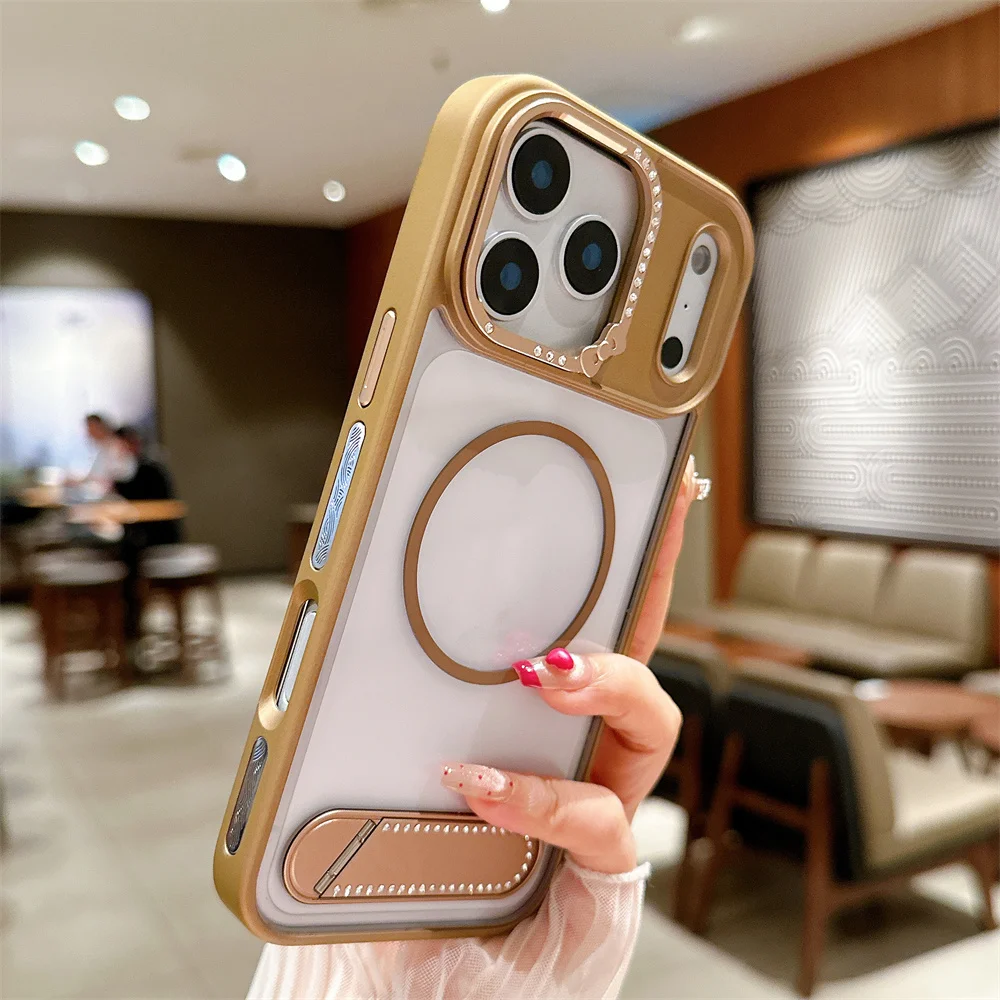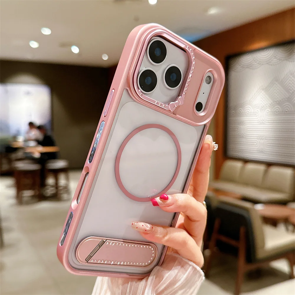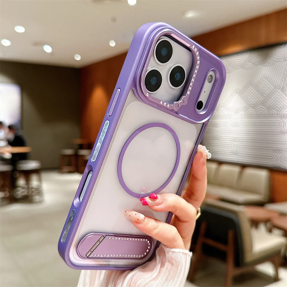 Funda de teléfono magnética transparente con soporte Invisible de lujo para iPhone 17 16 15 14 13 Pro Max Air Plus cubierta de armadura de parachoques de Color sólido