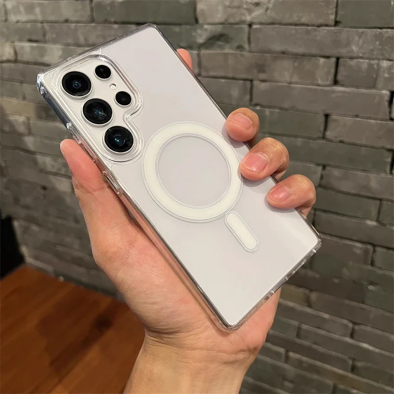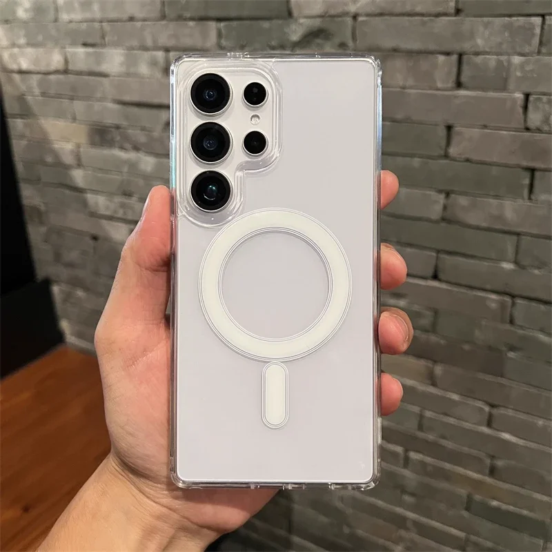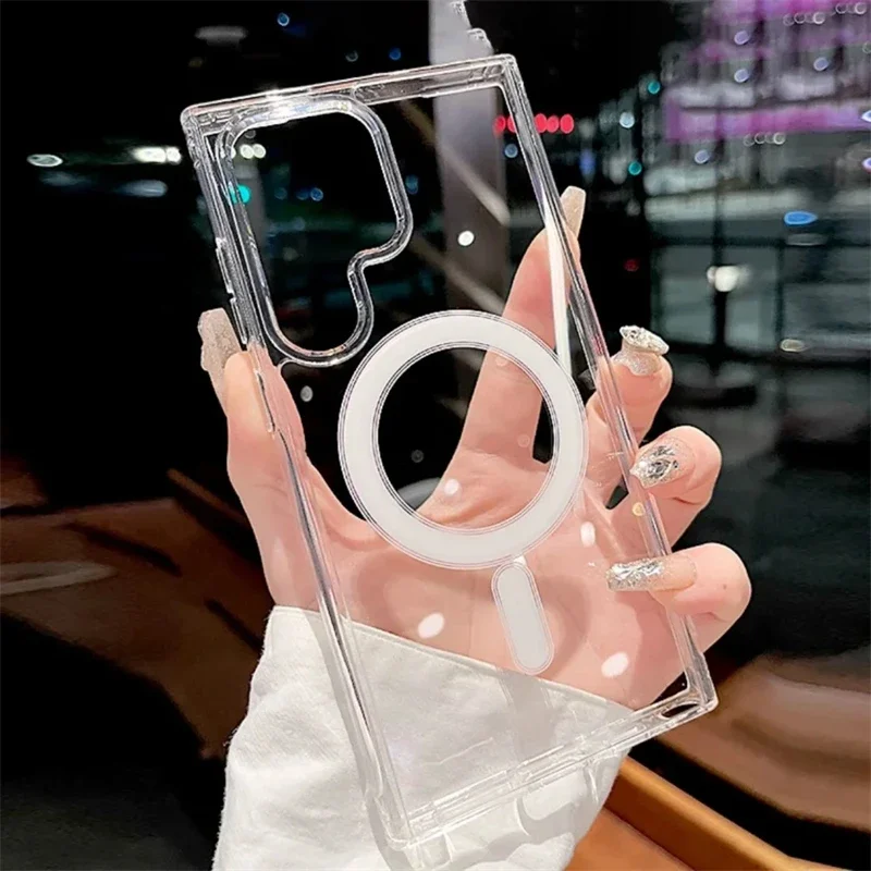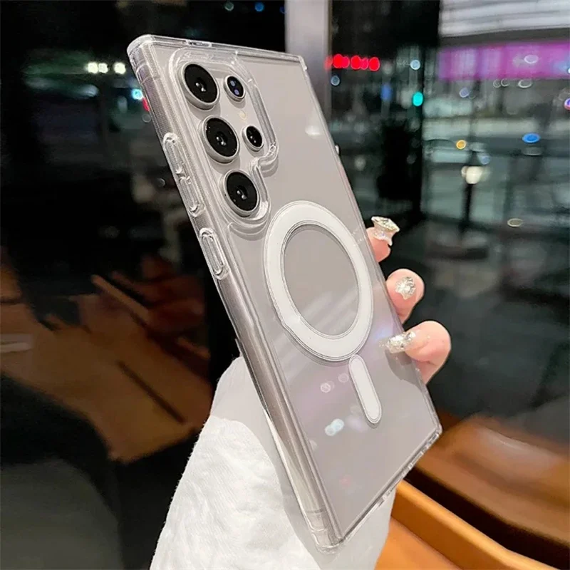 Funda de teléfono con carga magnética Magsafe para Samsung Galaxy S25 Ultra S24 Plus S23 S22 S21 S20 FE Ultra 25 borde transparente a prueba de golpes