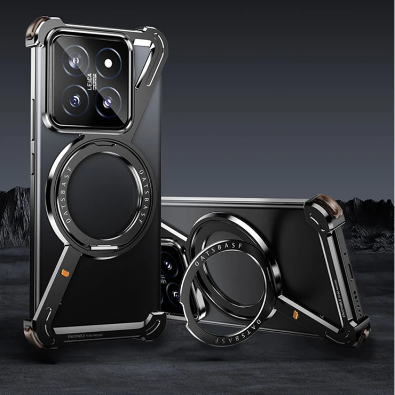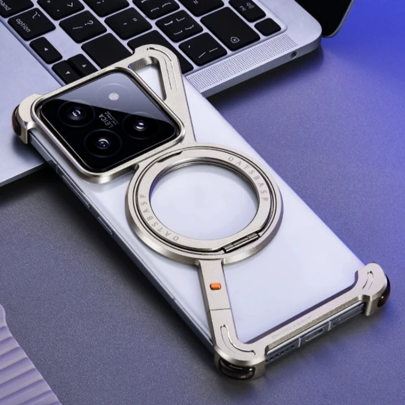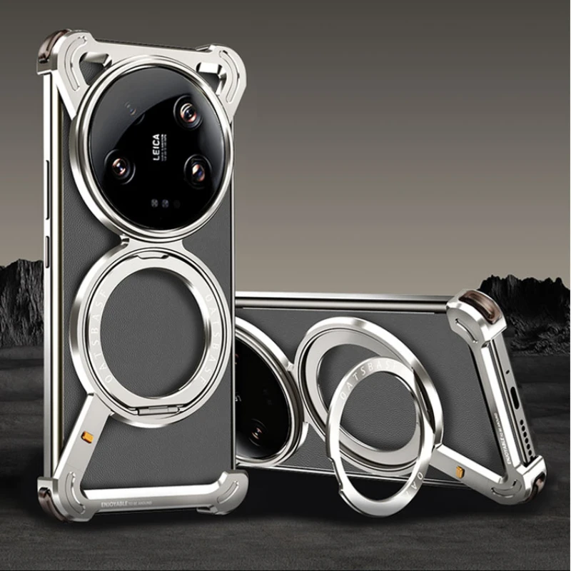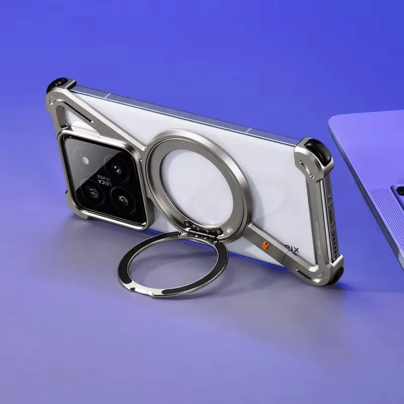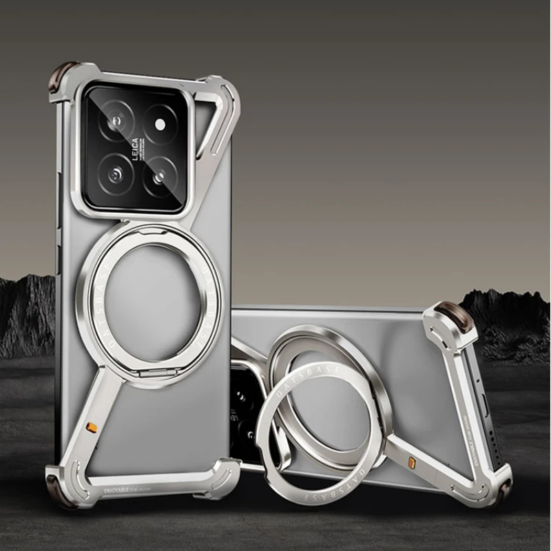 Funda de teléfono Magsafe con marco de Metal en forma de Z para Xiaomi 14 15 Pro Ultra aleación de aluminio sin marco 360 ° Cubierta a prueba de golpes con soporte magnético