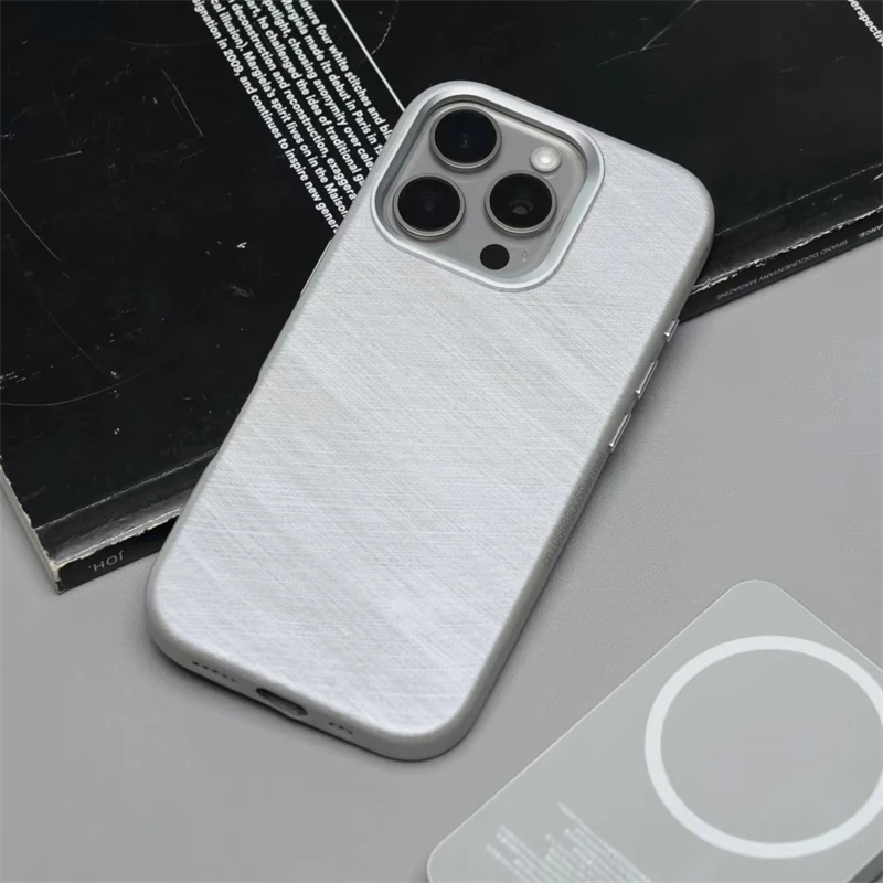 Funda de teléfono Magsafe con textura de cuero y seda de lujo para iPhone 14 15 16 Pro Max Plus, funda dura a prueba de golpes con carga inalámbrica magnética