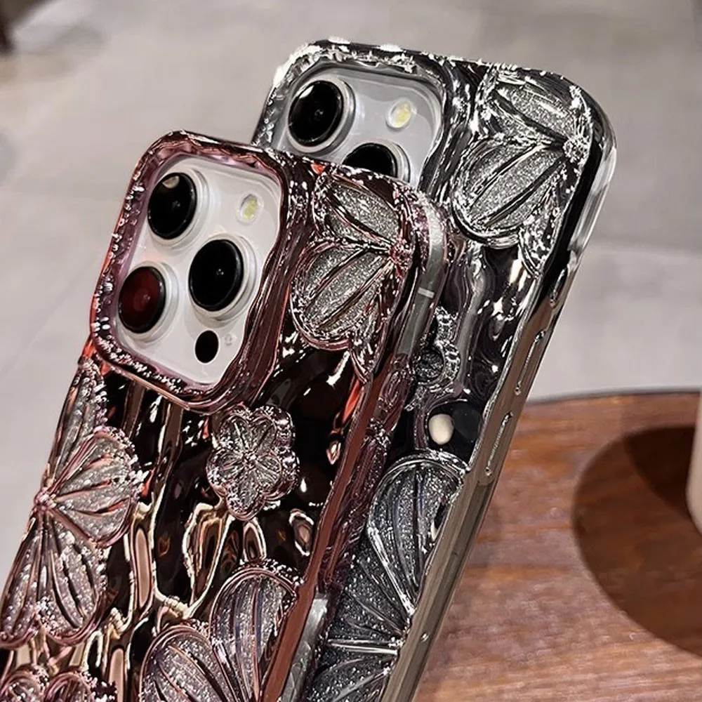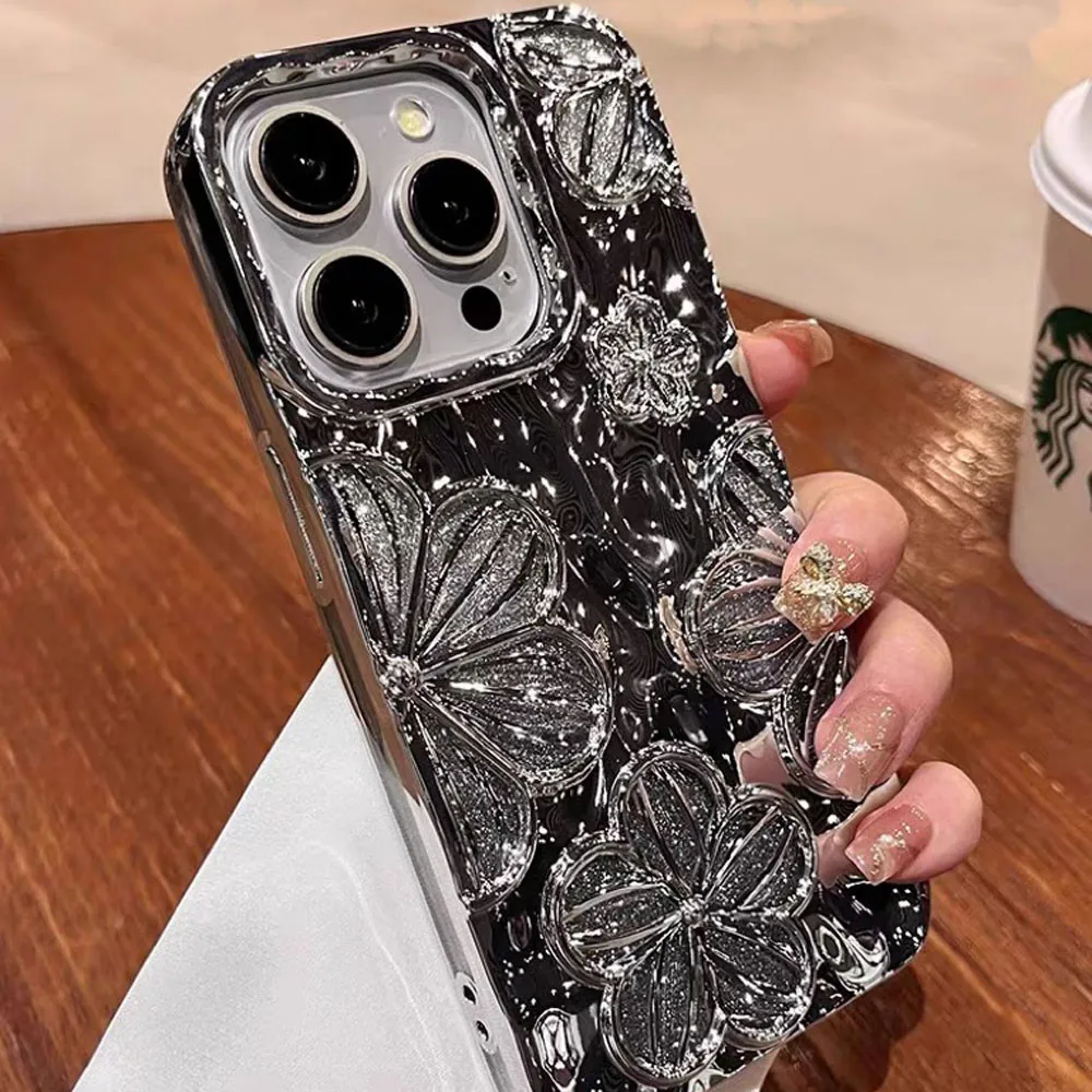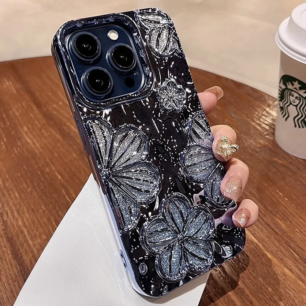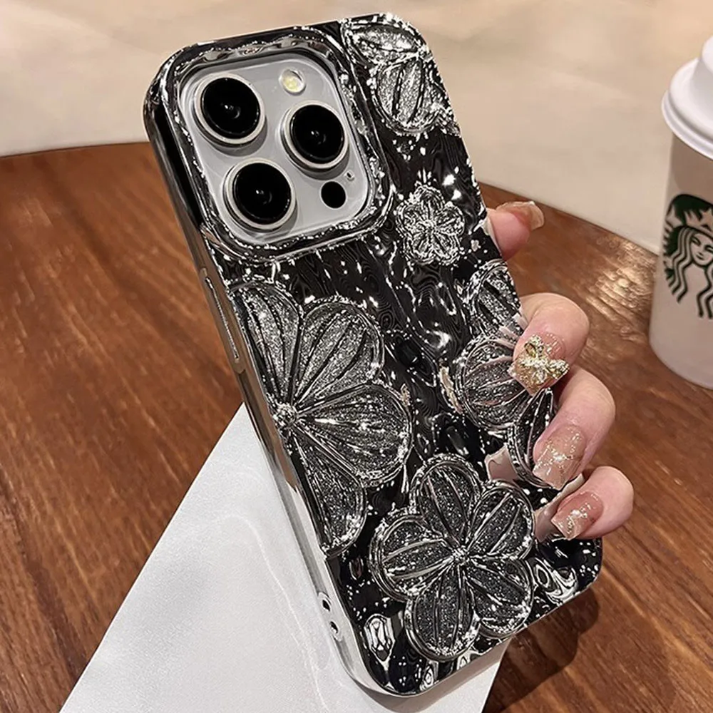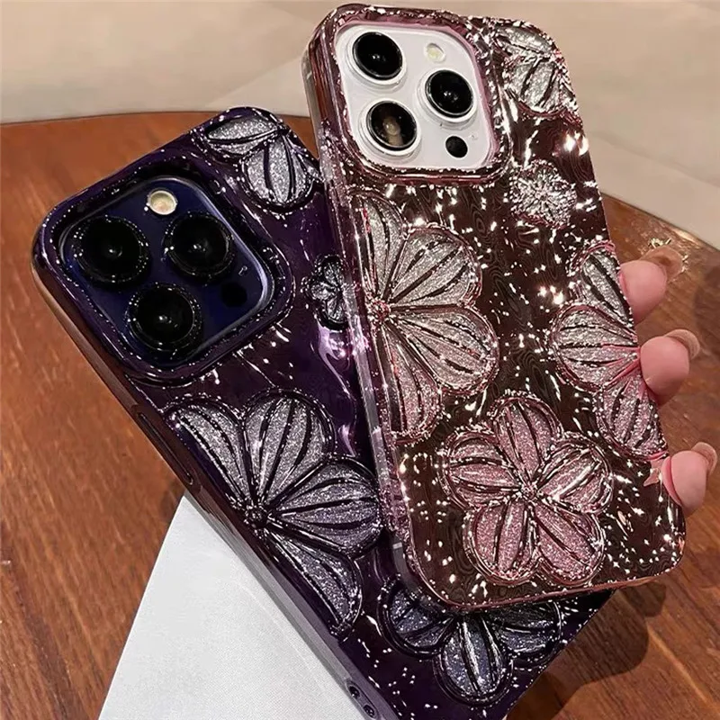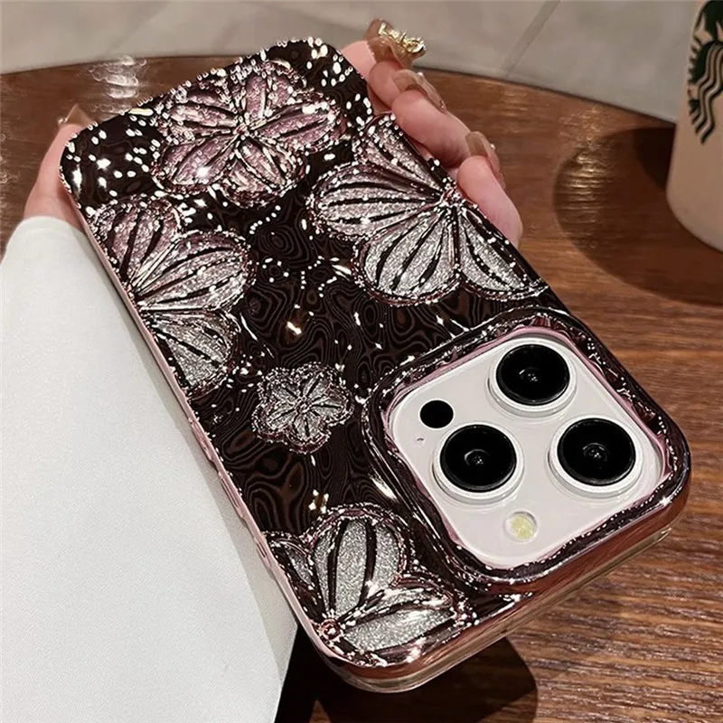 Comprar Funda de teléfono con marco chapado cuadrado para iPhone 15 Pro Max, carcasa protectora suave de lujo con flores brillantes para iPhone 11, 12, 13, 14