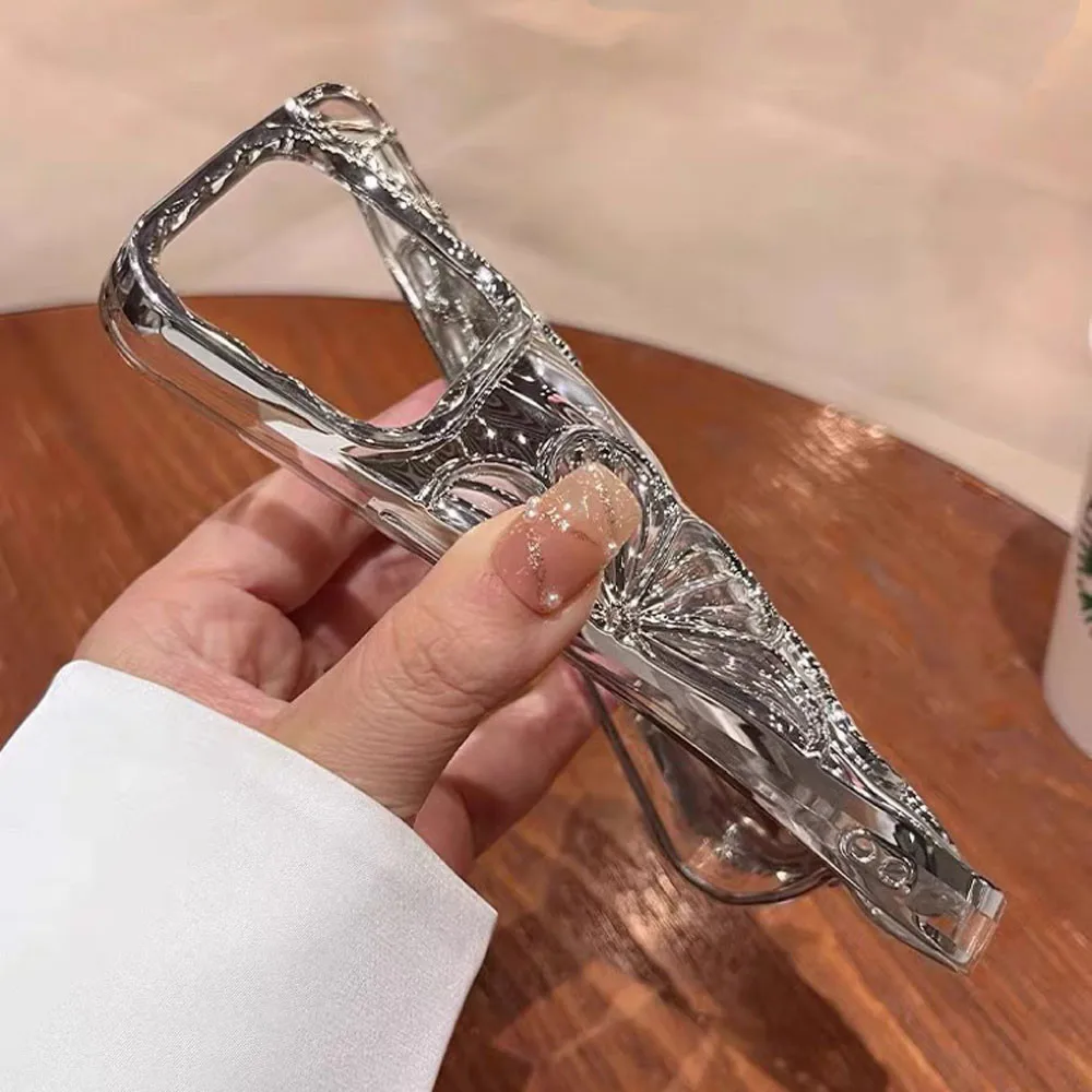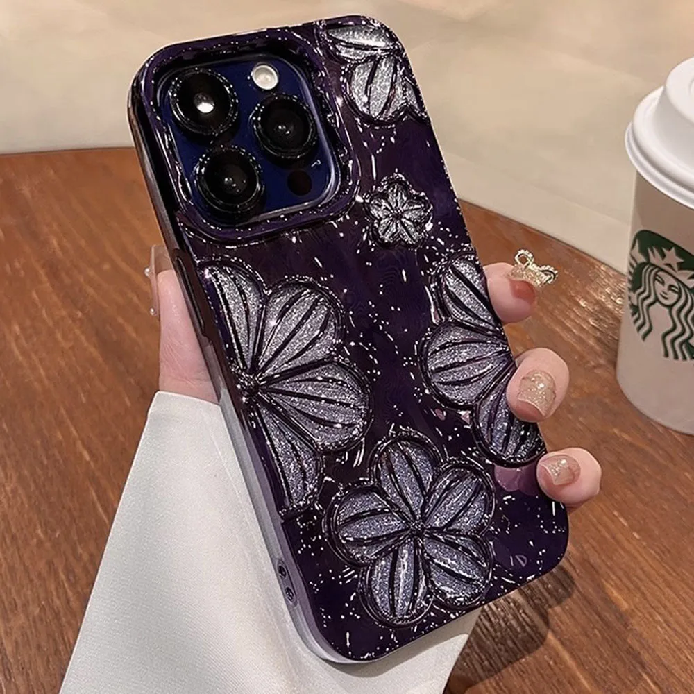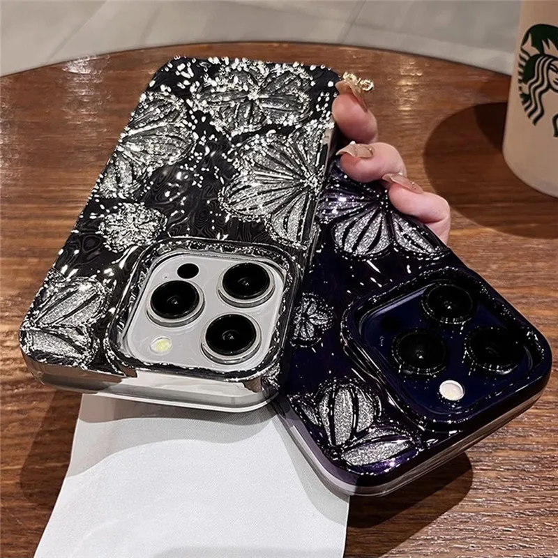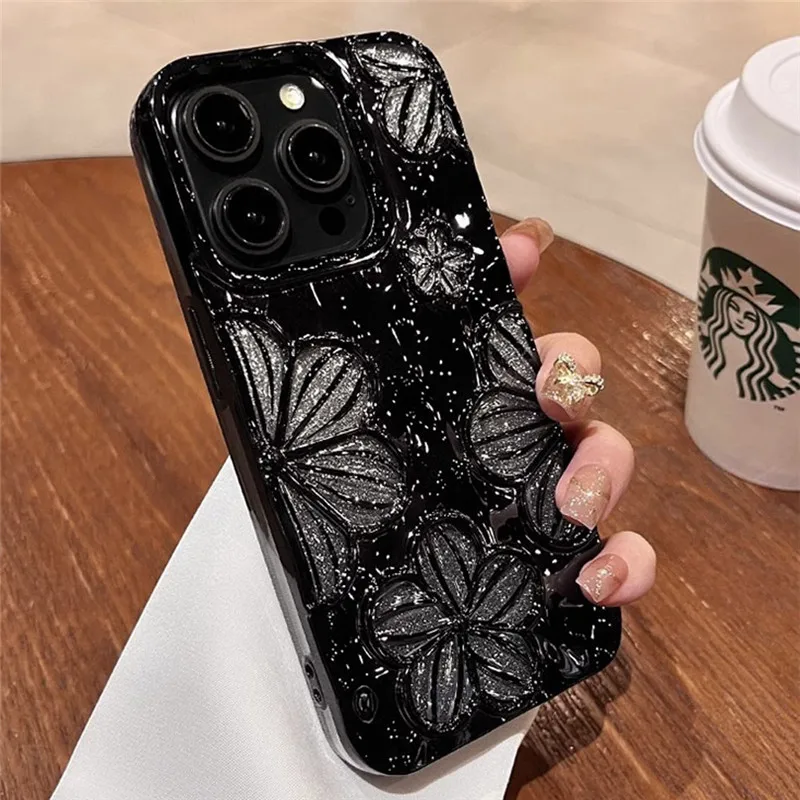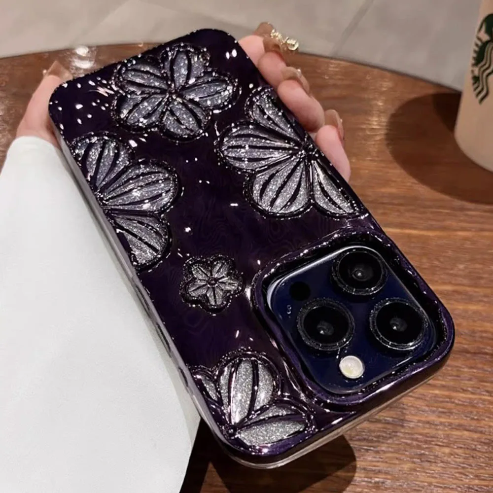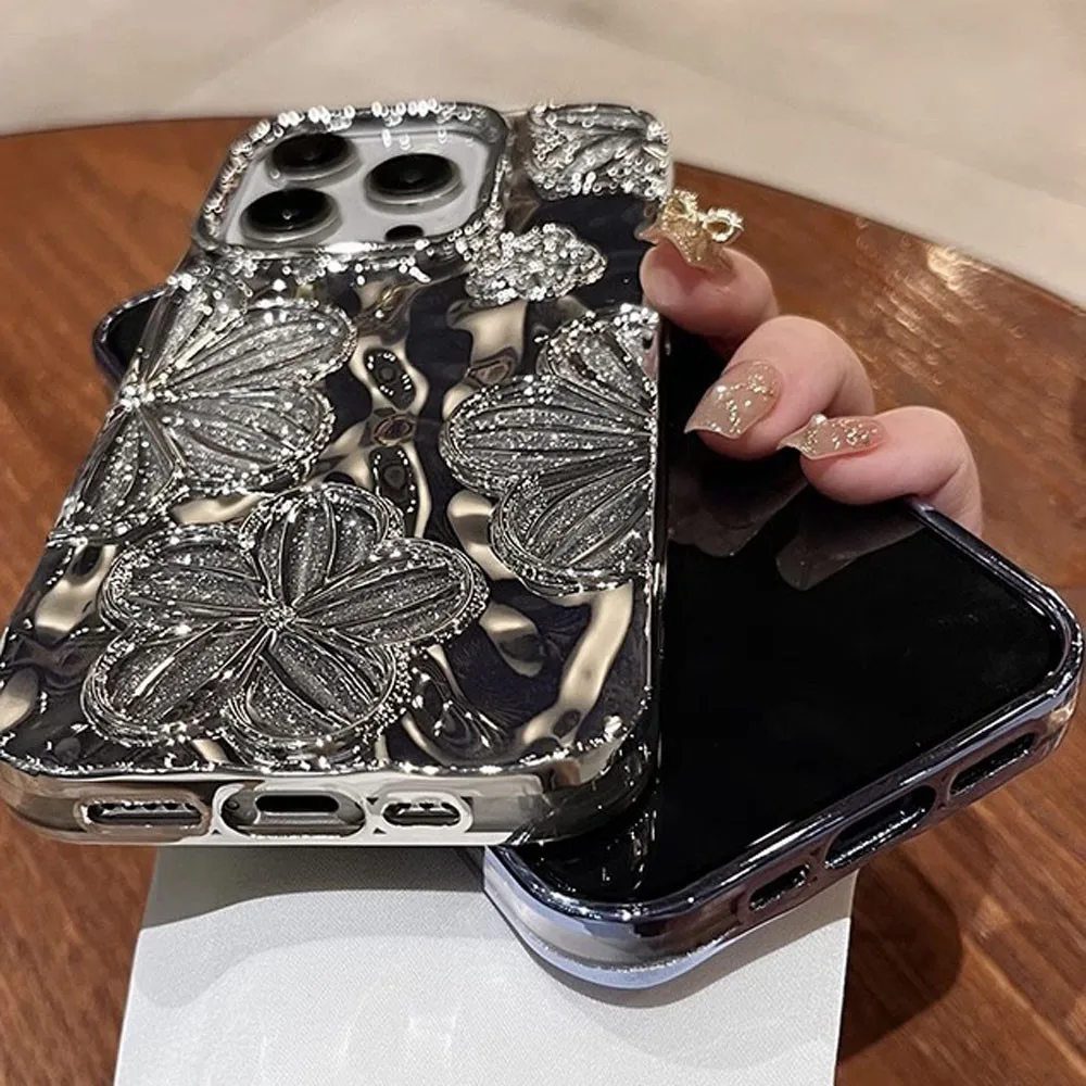 Comprar Funda de teléfono con marco chapado cuadrado para iPhone 15 Pro Max, carcasa protectora suave de lujo con flores brillantes para iPhone 11, 12, 13, 14