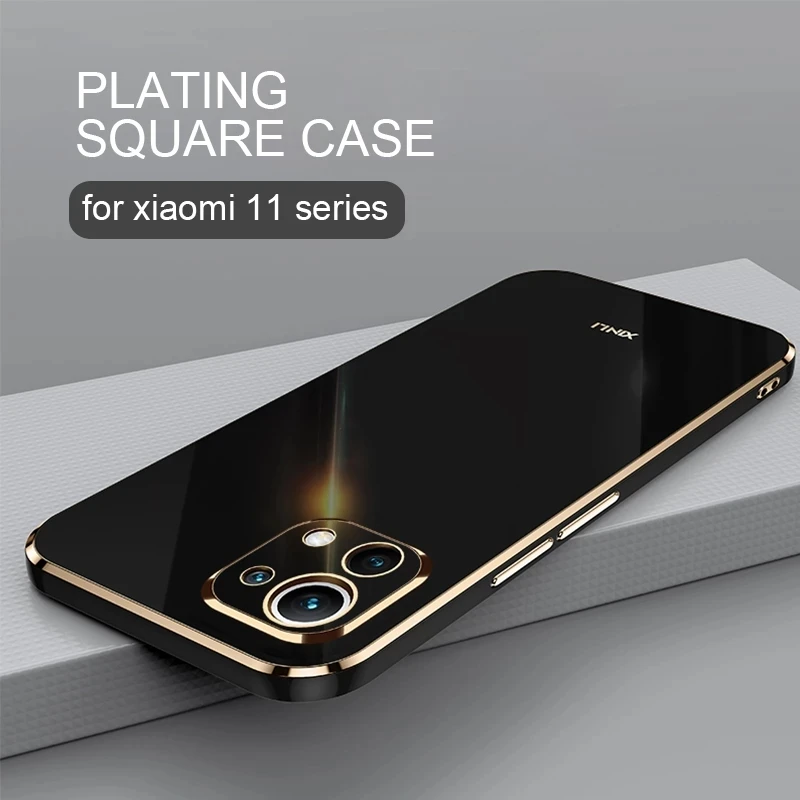 Comprar Funda de teléfono con marco cuadrado chapado para Xiaomi Mi 11 Lite 5g NE Xiaomi11 4g 11 lite 11i Mi11T pro, funda trasera de silicona suave de lujo