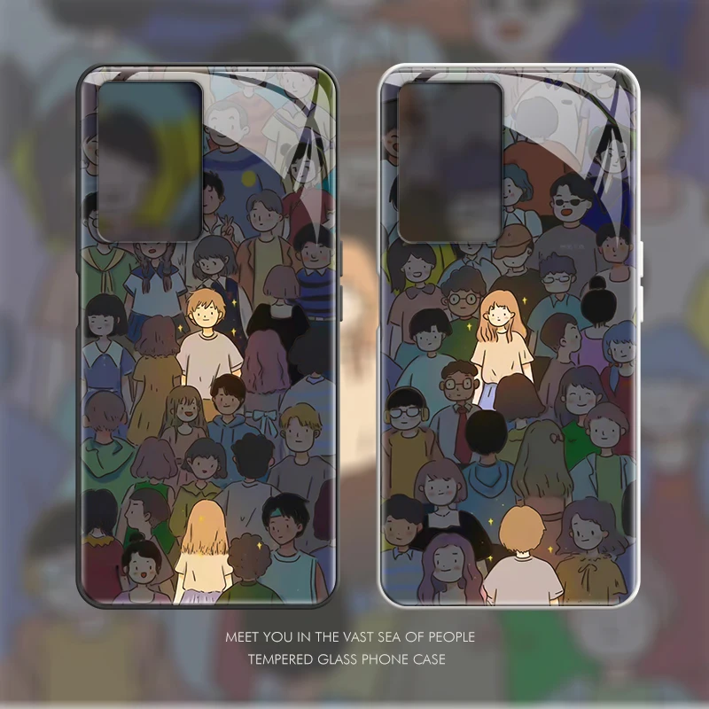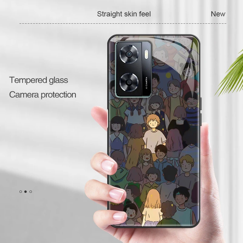 Comprar Funda de teléfono con marco cuadrado de silicona para OPPO A57 A57S A57E 2022 4G 5G, cubiertas traseras duras de vidrio templado de lujo de dibujos animados para niños y niñas