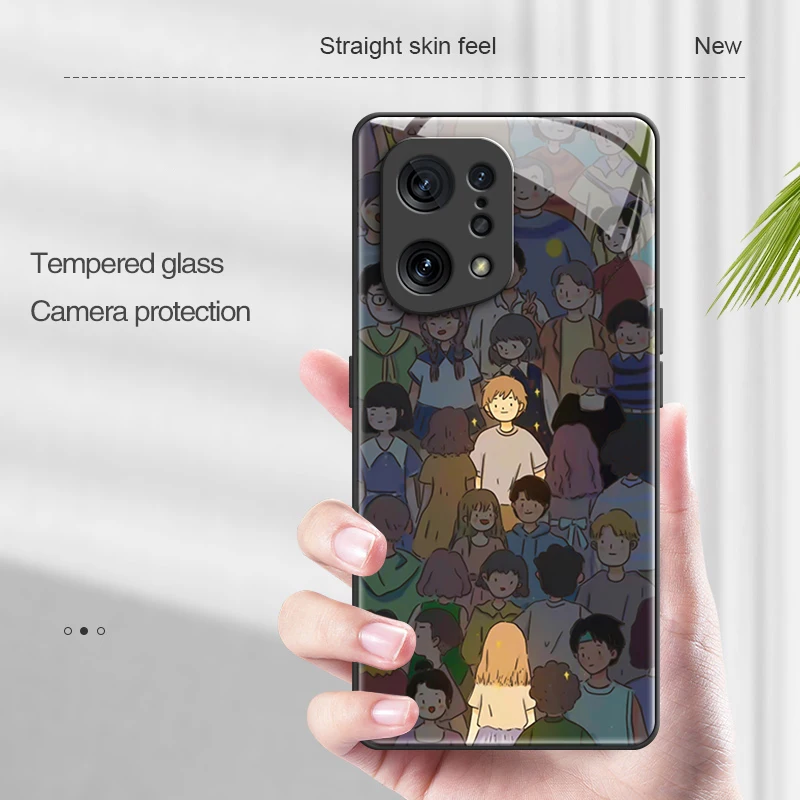 Funda de teléfono con marco cuadrado de silicona para OPPO Find X5 Pro Findx5 X5Pro 5G, nueva funda trasera dura de vidrio templado de lujo a prueba de golpes