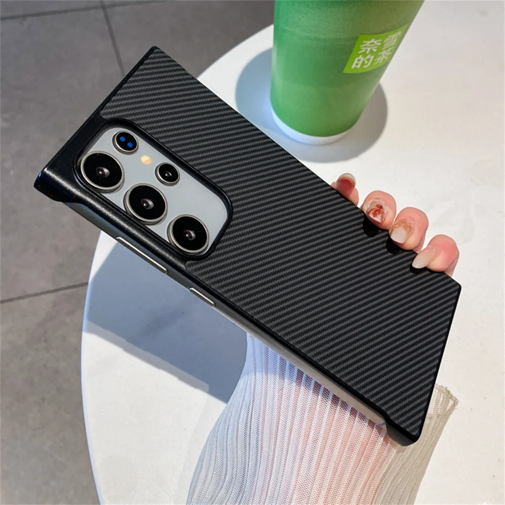 Funda de teléfono sin marco de PC con patrón de fibra de carbono de lujo para Samsung Galaxy S25 Ultra S24 Plus, funda trasera fina protectora sin bordes