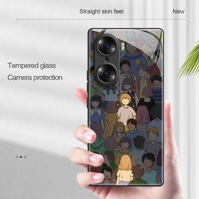 Funda de teléfono con marco de silicona cuadrado para Huawei Honor 60 pro SE Honor60 60Pro 60SE, cubierta protectora de borde recto de vidrio templado de lujo
