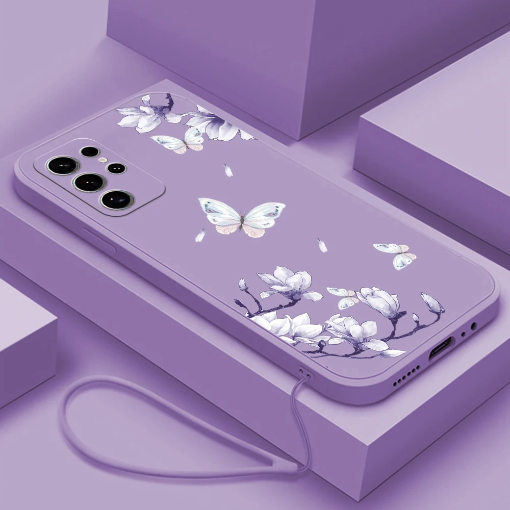 Comprar Funda de teléfono de mariposa de flores para Samsung Galaxy S23 S24 Ultra Plus S22 S23 Plus S 23 S21 S22 Ultra S20 S21 FE 5G, funda de silicona