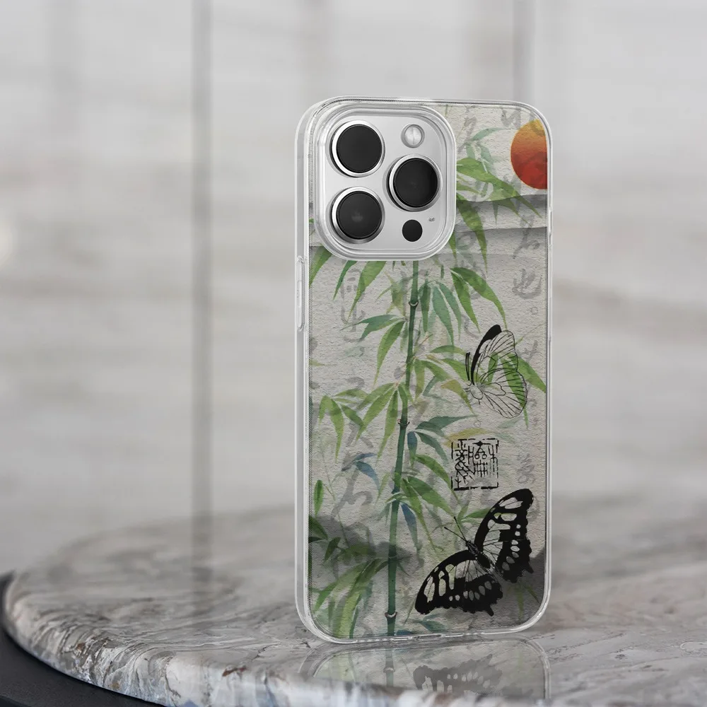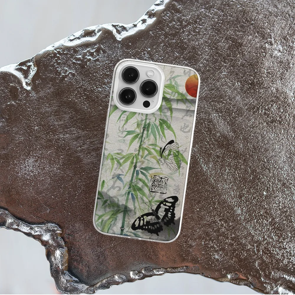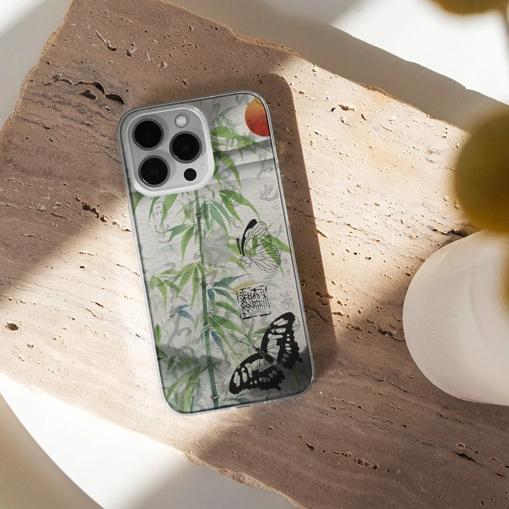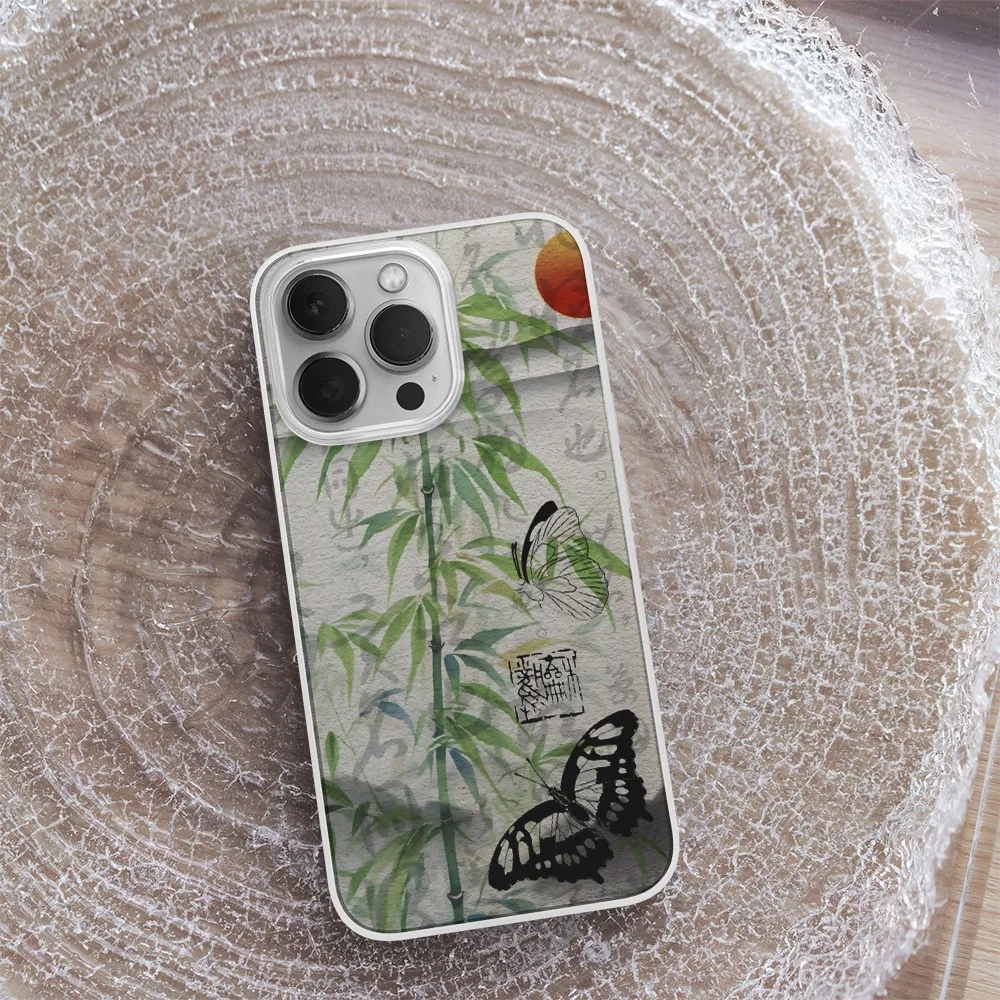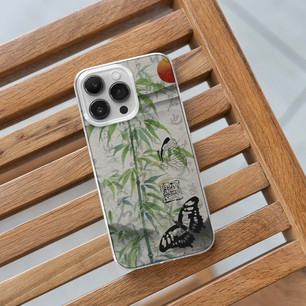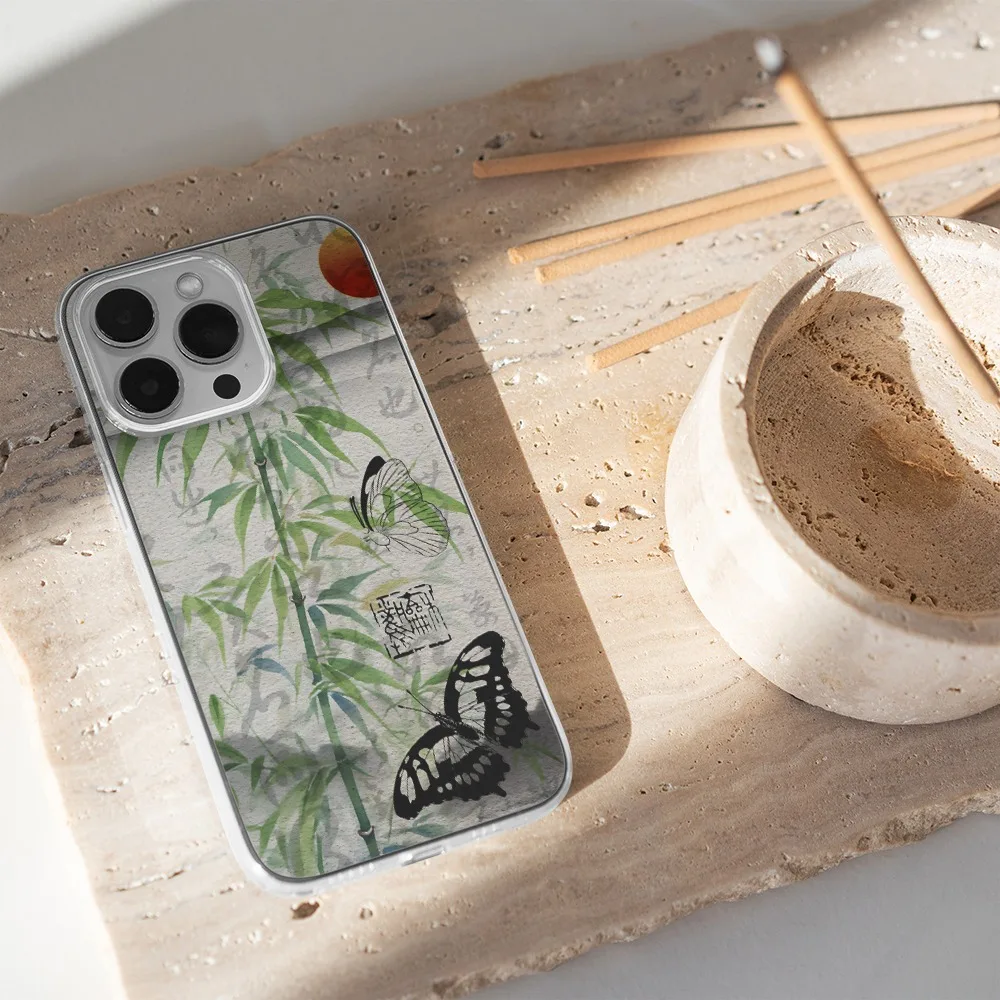 Comprar Funda de teléfono con mariposa negra de bambú cian para Iphone 15 14 13 12 11 PRO MAX 7 8 PLUS X XR XS MAX SE2, cubierta suave a prueba de golpes