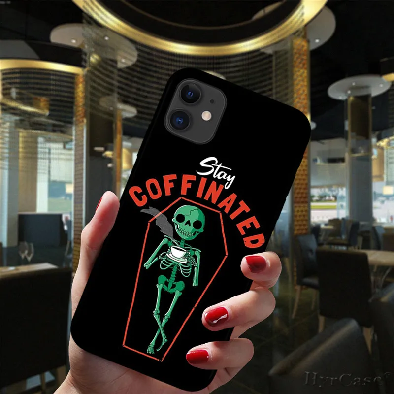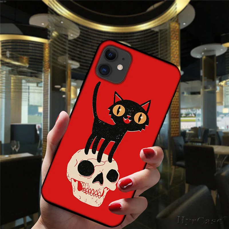 Funda de teléfono con divertido gato escalonado con máscara de calavera para iPhone 12 Mini 11 Pro XS Max 6S 8 7 Plus X XR SE 2020 funda negra de silicona suave