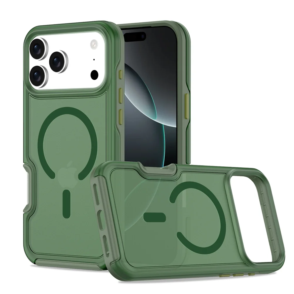 Luxury For Magsafe Frosted Translucent Armor Matte Phone Case For iPhone 17 Pro Max Air Plus Dual-Layer Protective Back Cover