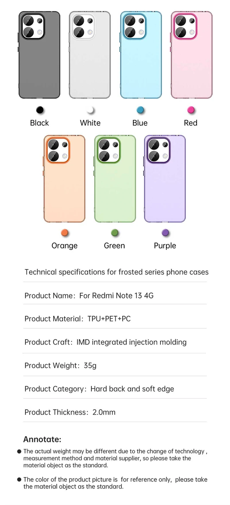 Comprar Funda de teléfono mate caramelo para Xiaomi Redmi Note 13 4G cubierta trasera a prueba de golpes para Redmi Note 13 4G sensación agradable a la piel чехол Funda