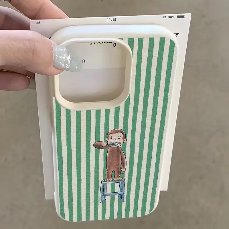 Comprar Funda de teléfono mate con diseño de mono a rayas para IPhone 17 Air 16 11 12 13 14 15 Pro Max XS X XR 16 Plus 16E, funda suave de TPU a prueba de golpes