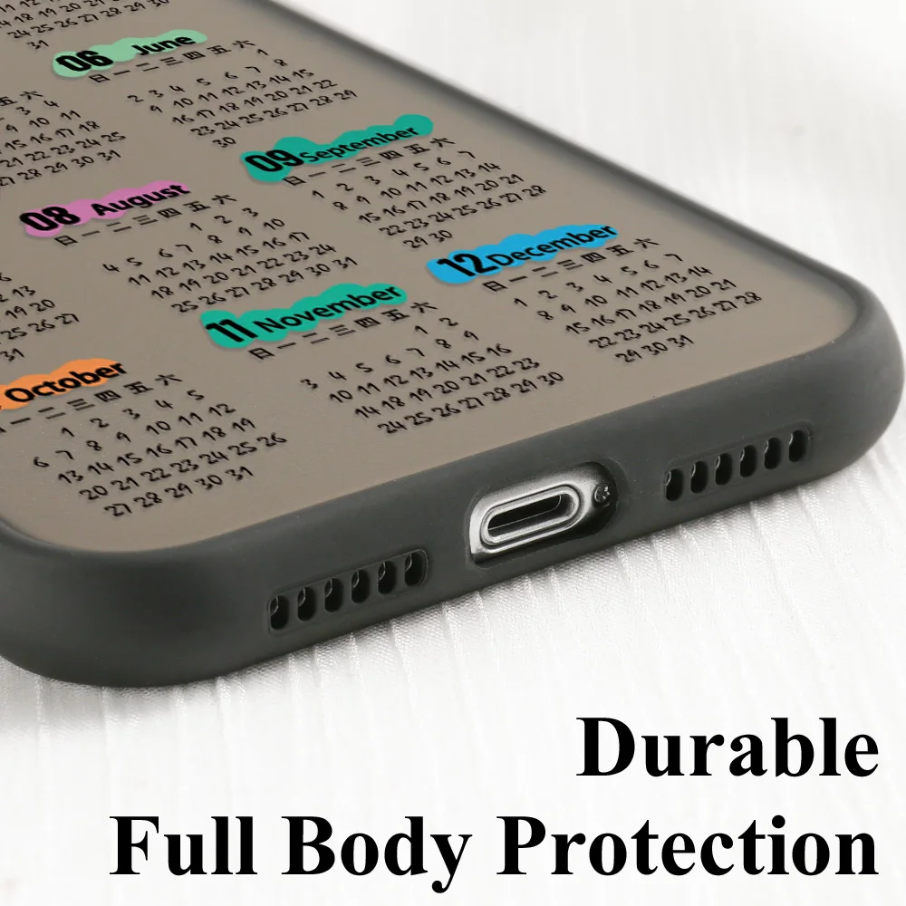 Funda de teléfono dura mate para iPhone 11 13 14 15 Pro Max XR X 7 8 Plus SE 2020 12 Mini 13promax calendario pintado Fundas funda Coque
