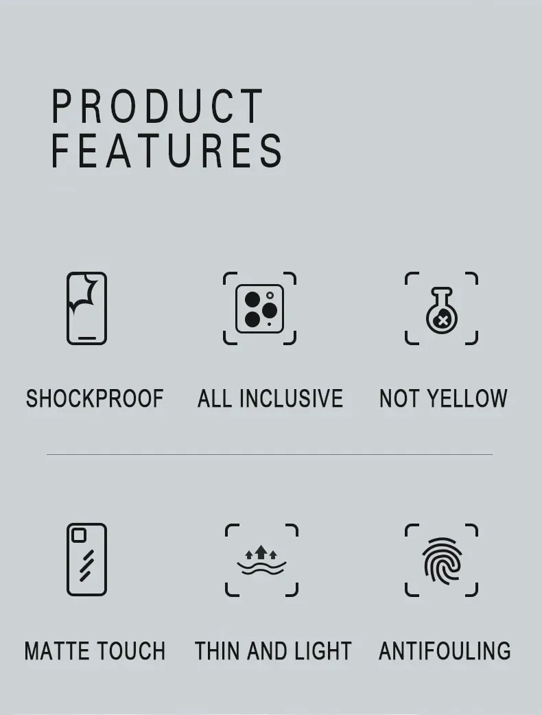 1. Funda de teléfono a prueba de golpes de silicona transparente mate ultrafina de lujo de alta calidad