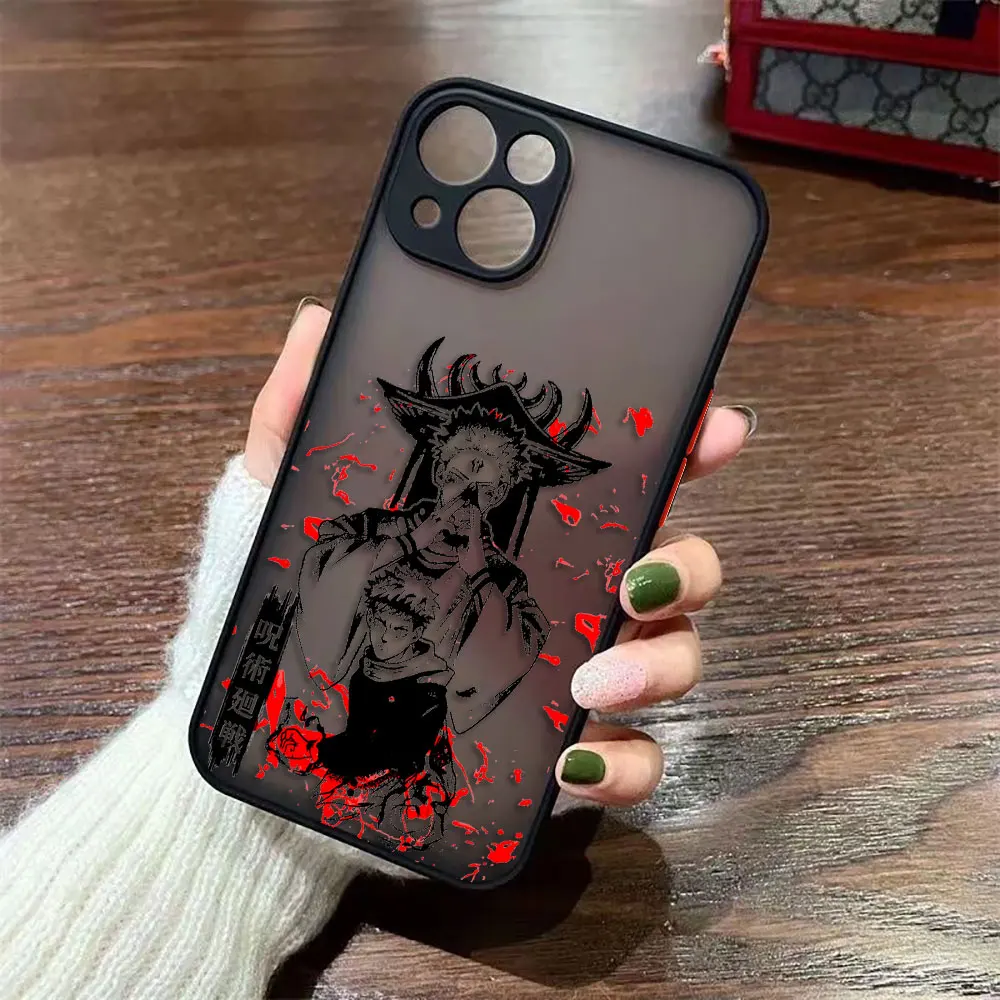 Cómics Negro Jujutsu KaisenFunda de teléfono mate para iPhone Apple 16 16E 15 11 12 13 14 Pro Max Mini SE 8 7 Plus Funda de siliconaCapa de concha de bricolaje