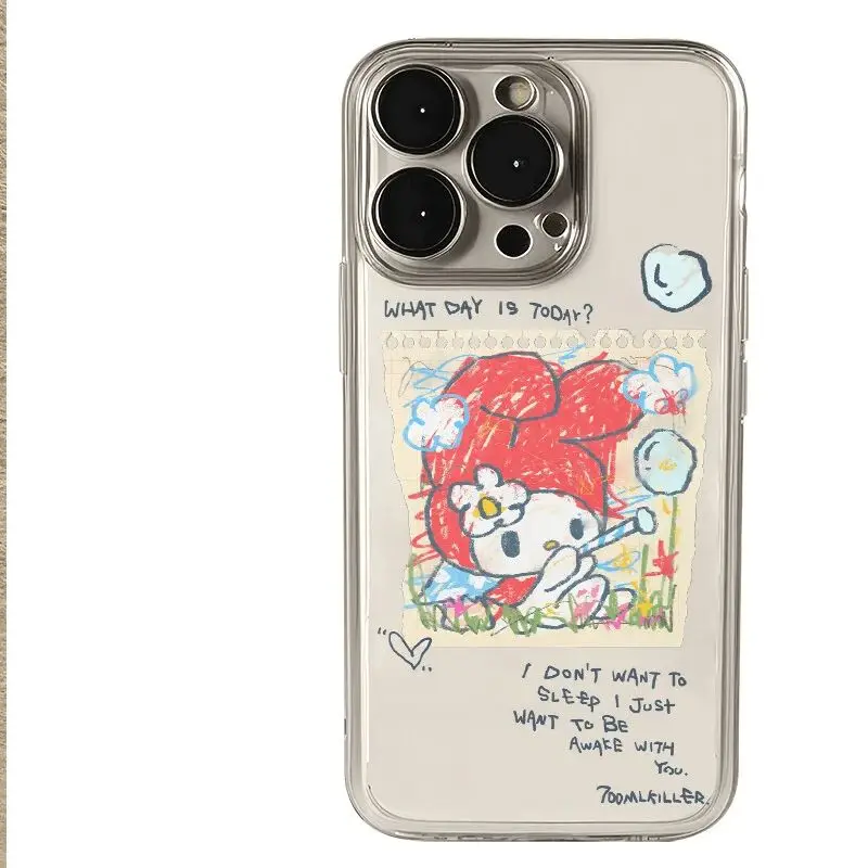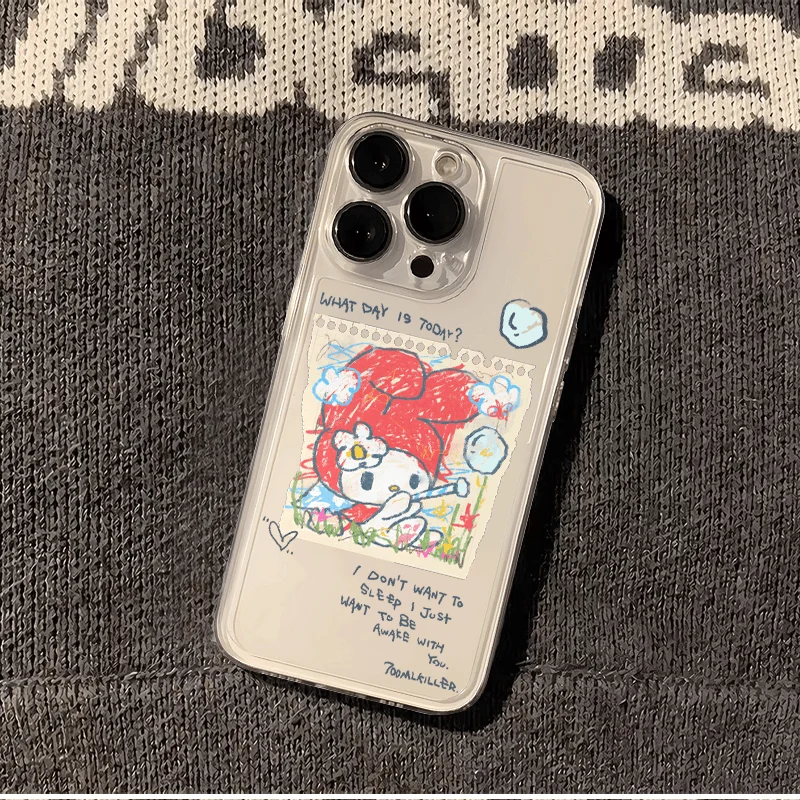 Comprar Funda de teléfono con melodía dibujada a mano para iPhone 16 15 14 13 12 11 Pro Max 7 8 Plus XR XS Max encantadora funda Kawaii anticaída