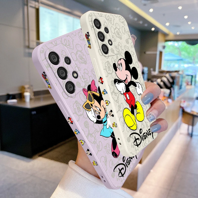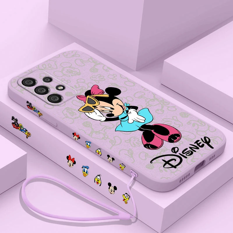 Funda de teléfono Mickey Mouse Minnie para Samsung A55 A53 A33 A52 A32 A71 A51 A21S A35 A25 5G Funda de cuerda izquierda líquida