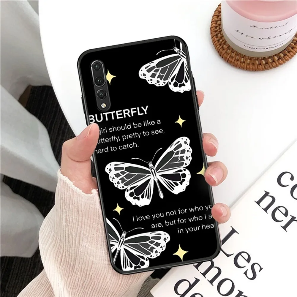 Comprar Funda de teléfono minimalista con mariposa de dibujos animados INS para Huawei P 8 9 10 20 30 40 50 Pro Lite Psmart Honor 10 Lite 70 Mate 20lite