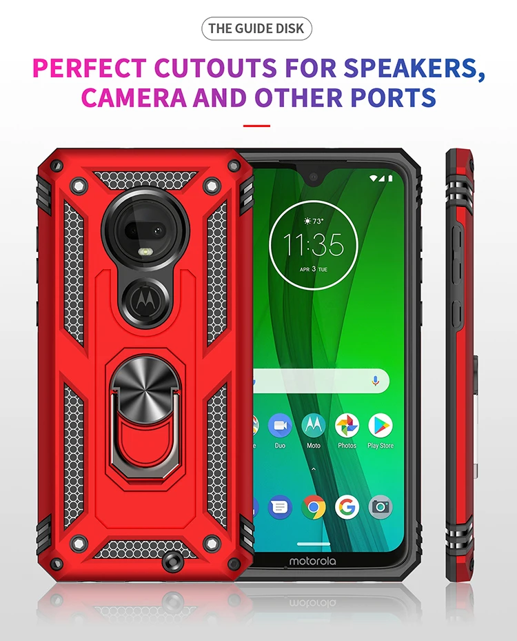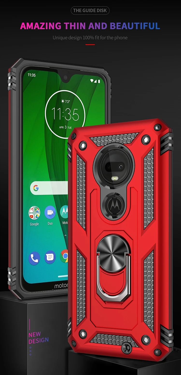 Armor Funda a prueba de golpes para Motorola Moto G7 Plus G7Plus G7 + G 7 Plus Imán protector de caída militar Funda de anillo con soporte para coche