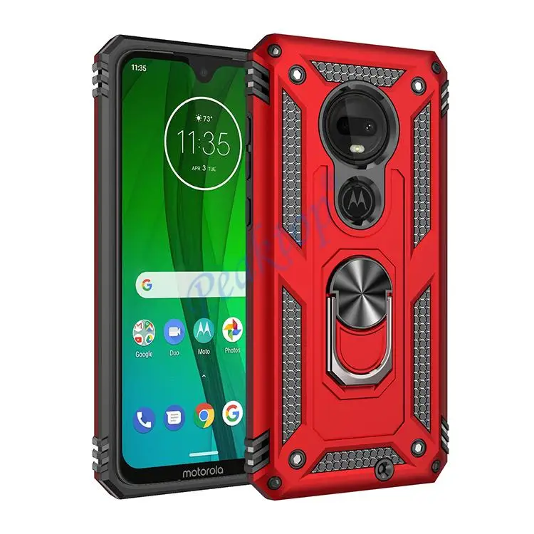 Armor Funda a prueba de golpes para Motorola Moto G7 Plus G7Plus G7 + G 7 Plus Imán protector de caída militar Funda de anillo con soporte para coche
