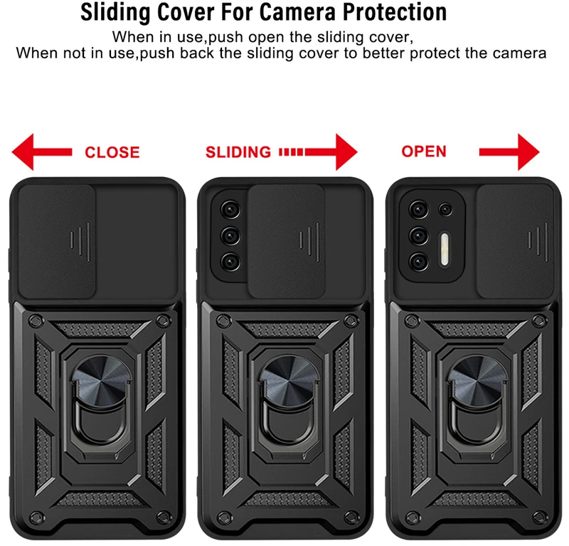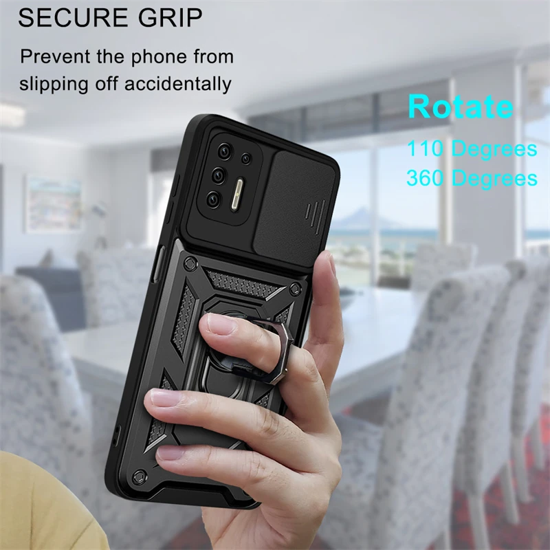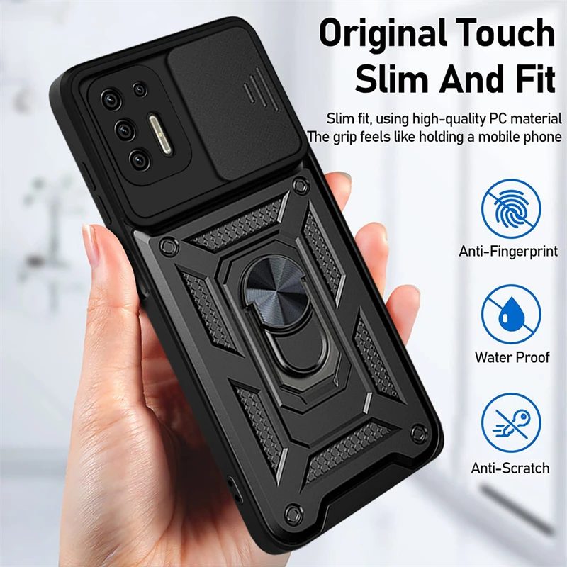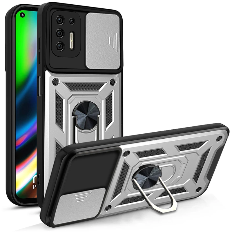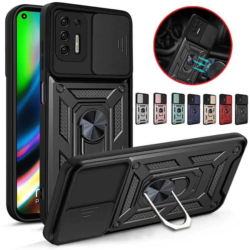 Comprar Funda de teléfono para Motorola Moto G9 Power, armadura de cámara Push Pull para Moto G9 Play G9 Plus E7 Plus, funda trasera con soporte magnético